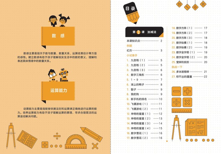 本套图书包含5个分册,每个分册训练2-3种能力,共11种必备思维能力,包括数感、符号意识、空间观念、几何直观、数据分析观念、运算能力、推理能力、模型思想、应用意识、创新意识。思维能力好,就能学习好。