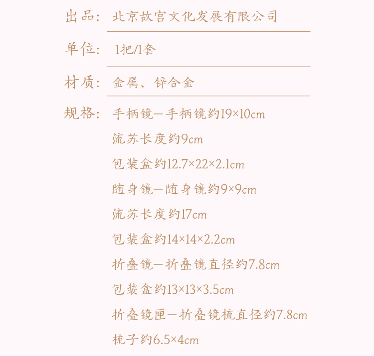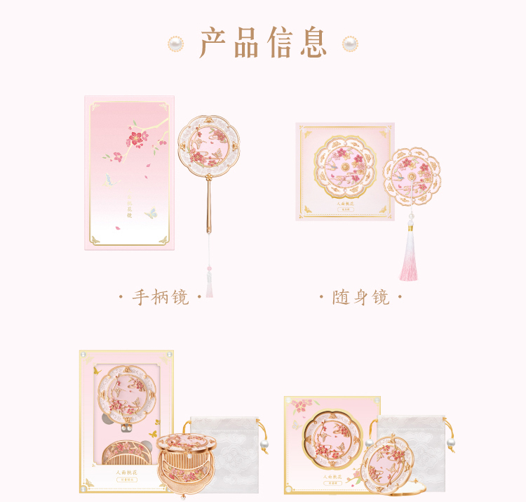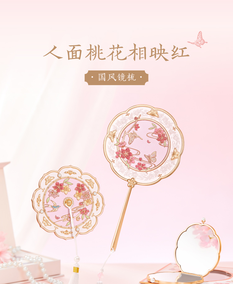 【故宫饰品】人面桃花镜手持古风化妆镜随身镜生日礼物