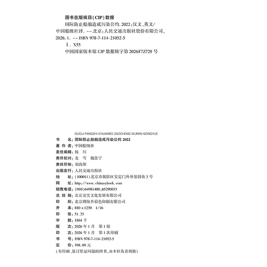 书名:国际防止船舶造成污染公约2022(MARPOL 2022)