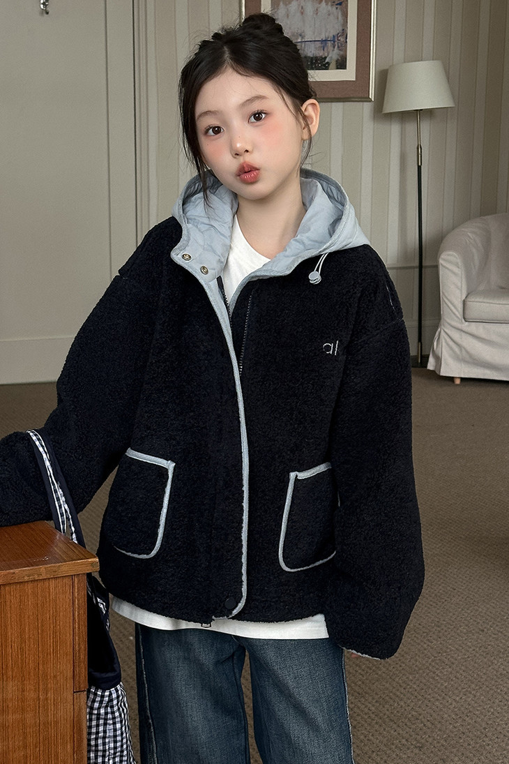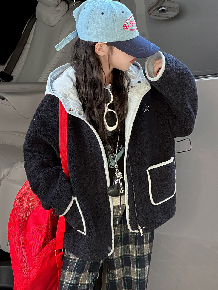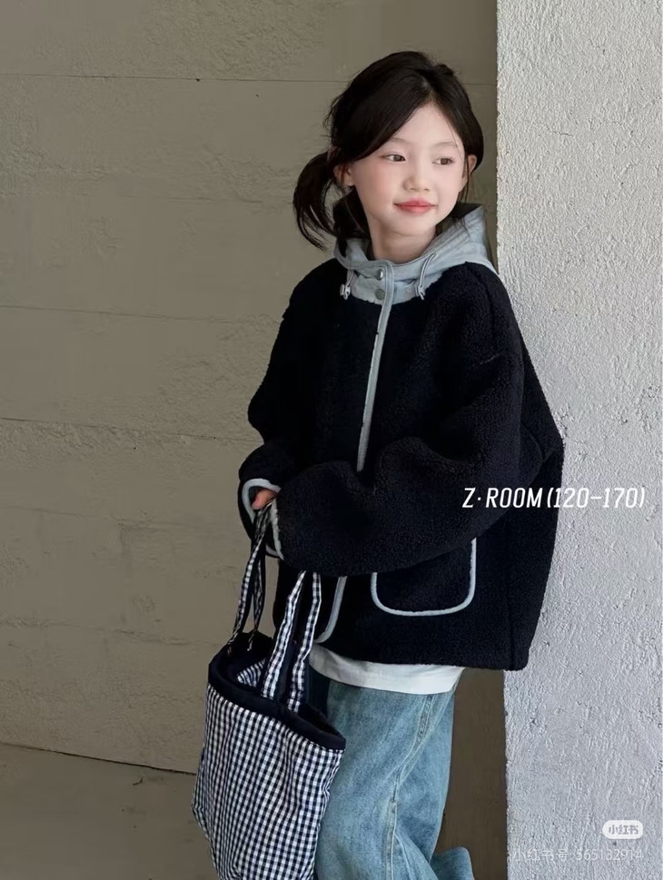 时髦保暖界的神仙单品❗真的很火! 毛绒绒的质感➕撞色连帽的设计 🌞 日常上学通勤超实用 内搭简约白T恤+浅色系牛仔裤, 套上这件撞色毛毛外套, 连帽一拉防风又保暖, 大口袋随手装红领巾、公交卡,轻便舒适不拖沓, 适配深秋上学的匆忙节奏。 品质是嘎嘎好,颜色很高级👍 男女宝都可以穿,闭眼抢!!