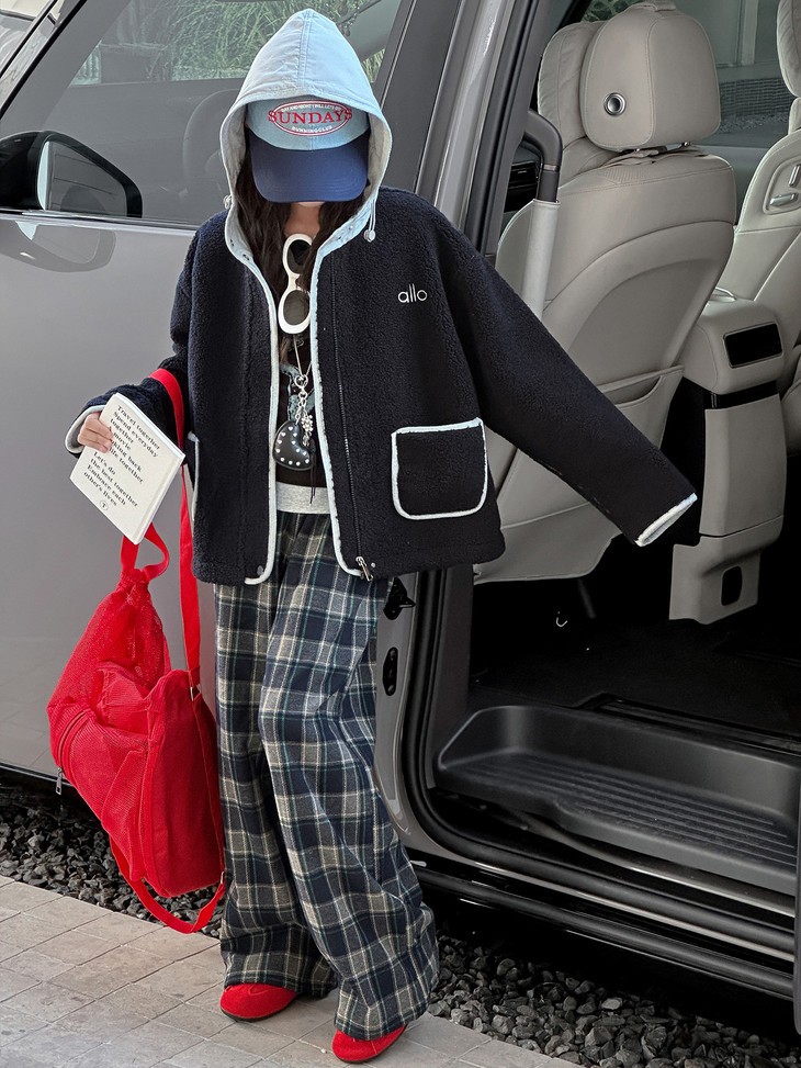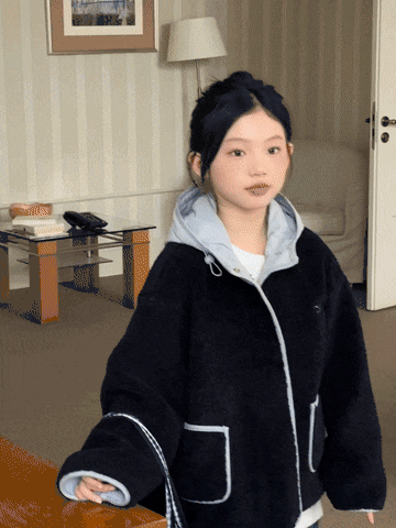 面料采用高克重羊羔毛 上身一点不显臃肿还很保暖 面料表层的羊羔毛质感丰厚 防风保暖,质感舒适不易掉毛 内里复合摇粒绒 温暖加倍! 防风保暖,实打实的那种‼️ 连帽休闲风的设计,上身舒适感满满 真的是时髦保暖界的神仙单品 我不允许任何一个小可爱错过!
