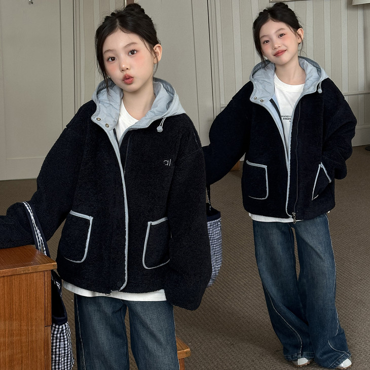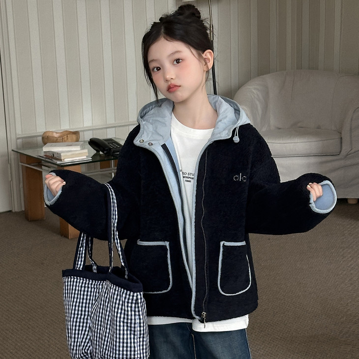 🍂被问爆的儿童抗寒外套!撞色毛毛款暖到0度! 谁懂啊!挖到宝了!这季女儿的抗寒战袍直接锁死这件撞色毛毛外套! 双绒复合+内层奥粒绒的配置,南方0-15度穿完全没问题!软乎乎的毛绒触感,贴身穿巨舒服~ 撞色设计太戳审美了!香芋紫奶fufu显白,藏青款自带高级感,两个颜色都想all in!连帽+大口袋的细节,保暖又实用,孩子上学/出门玩穿都方便! 今年的秋冬氛围感,是这件“抗寒密码”外套给的!宝妈们快冲!
