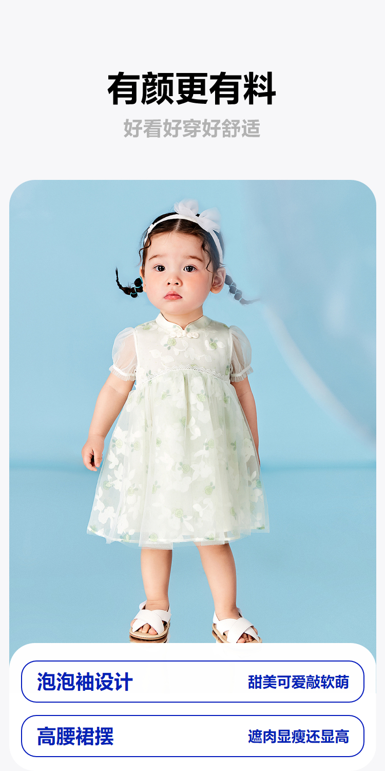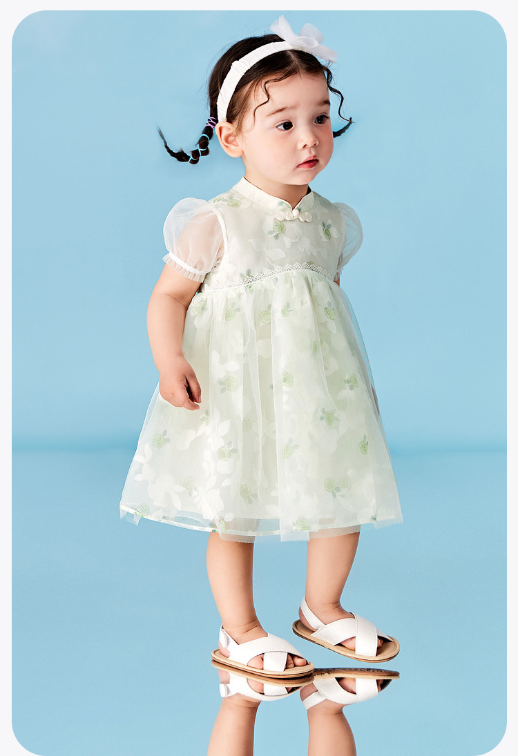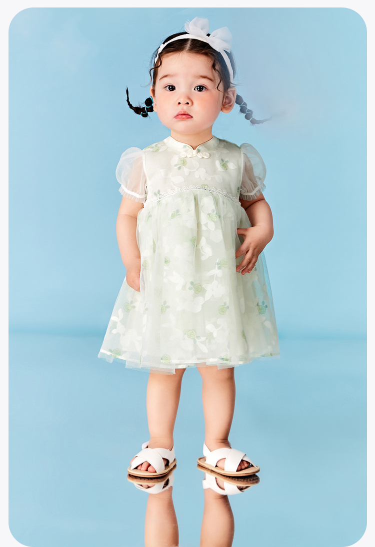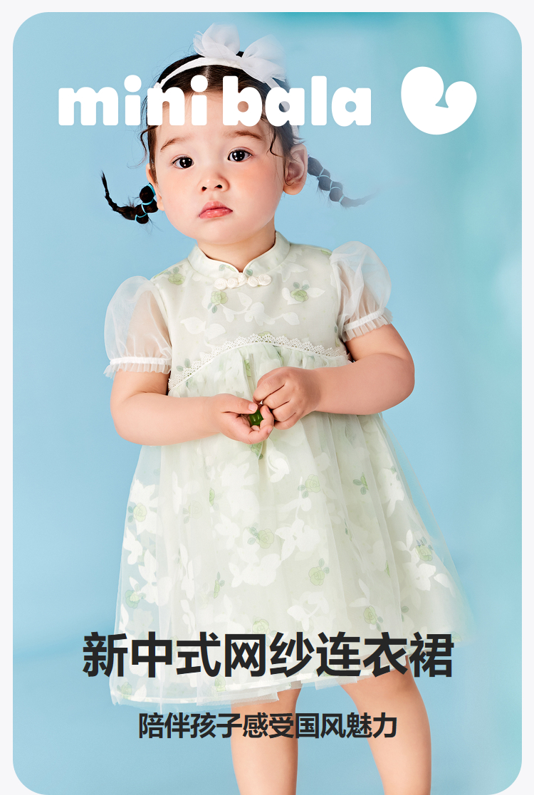 迷你巴拉女童新中式连衣裙宝宝柔软透气国风网纱蓬蓬裙夏季