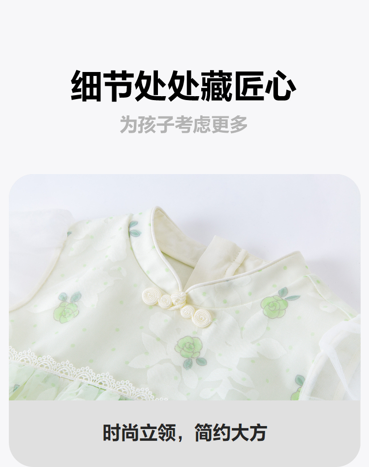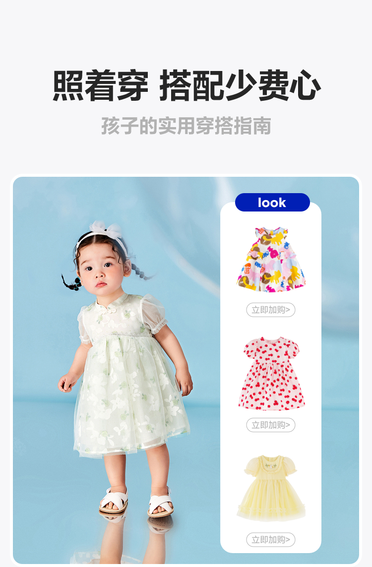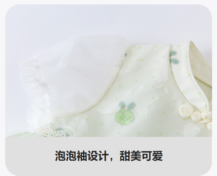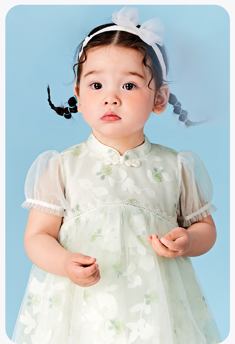 迷你巴拉女童新中式连衣裙宝宝柔软透气国风网纱蓬蓬裙夏季