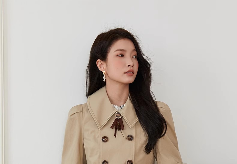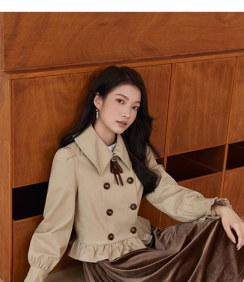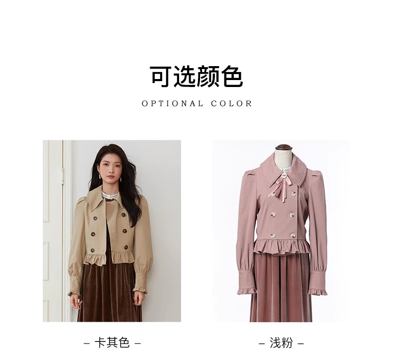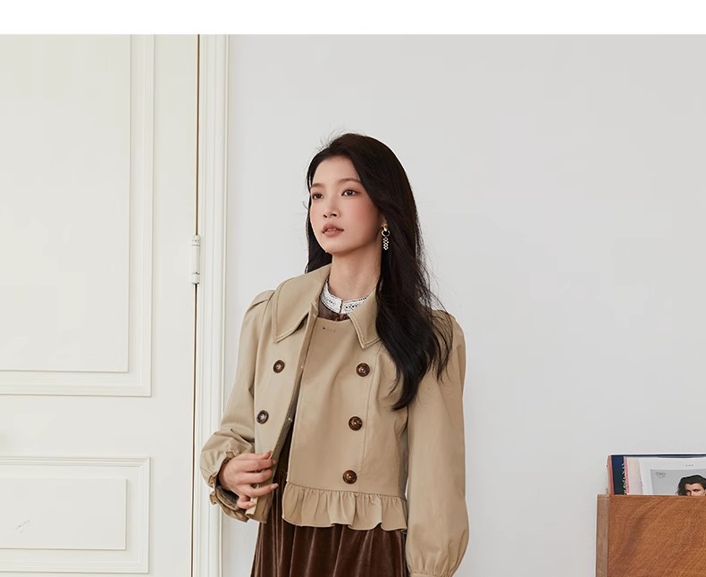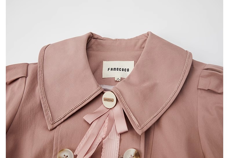 Famecoco范可儿法式花边灯笼袖短款风衣外套FAB6AV002
