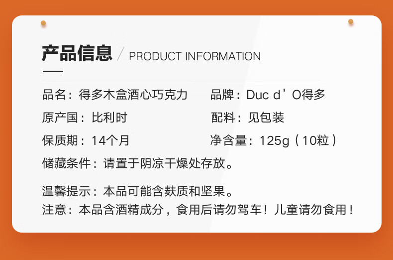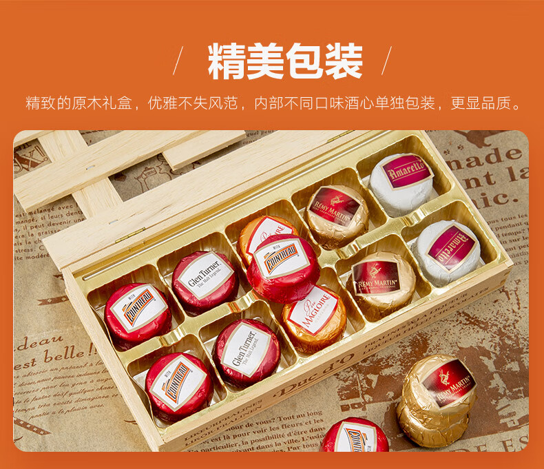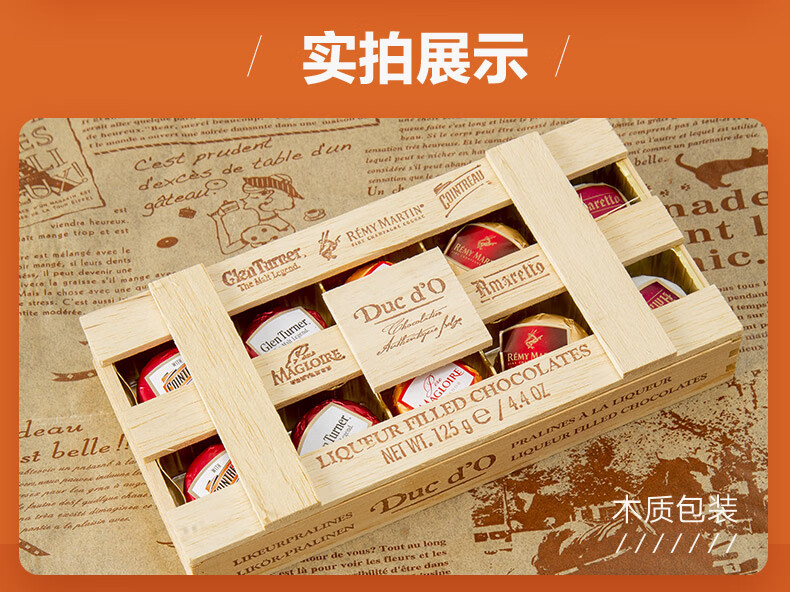 【中欧班列精选】比利时得多巧克力 原装进口得多木盒酒心巧克力 礼盒装 125g/盒