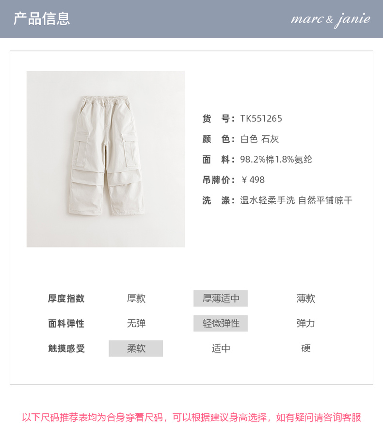 马克珍妮男童挺括有型工装伞兵裤2025年秋装新款551265