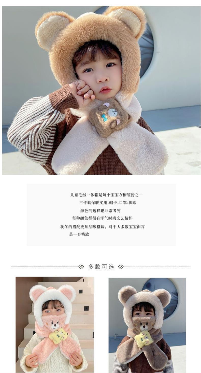 【YW】无忧购39元2件儿童冬季帽子围巾一体加厚保暖毛绒防风护耳帽(截单后7天发货)