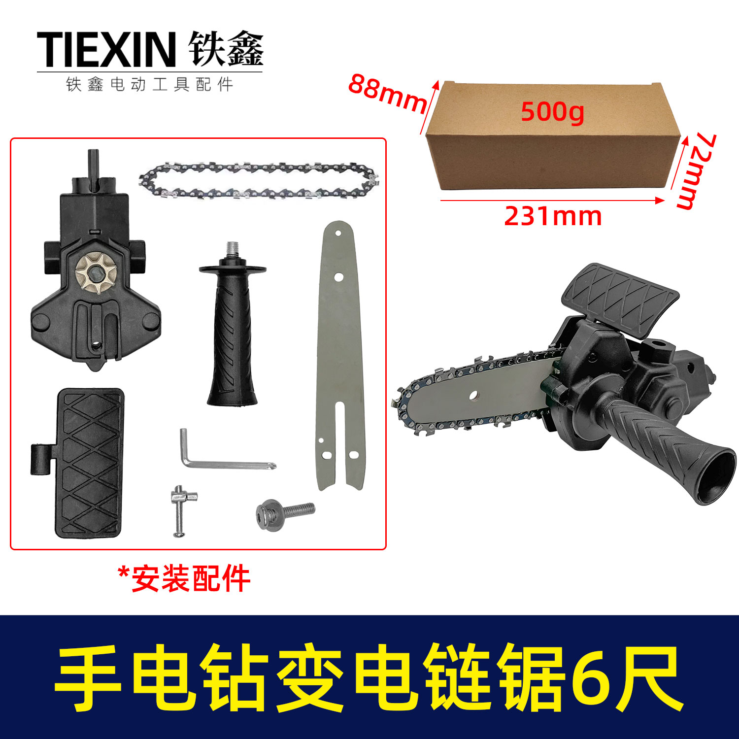 【货号02876】手电钻变电链锯万能转换器充电钻改电锯家用伐木迷你锯6寸