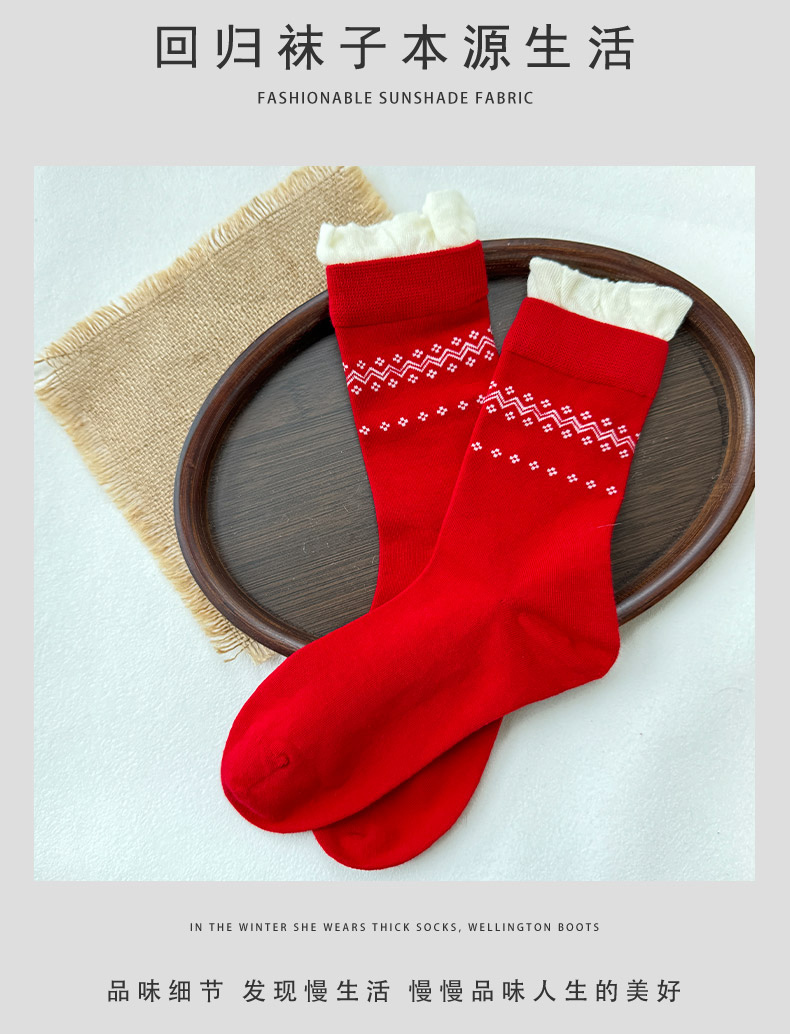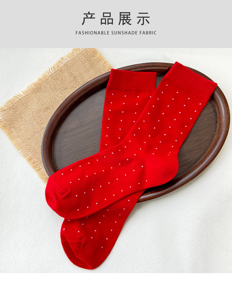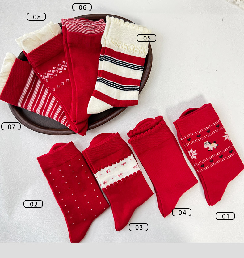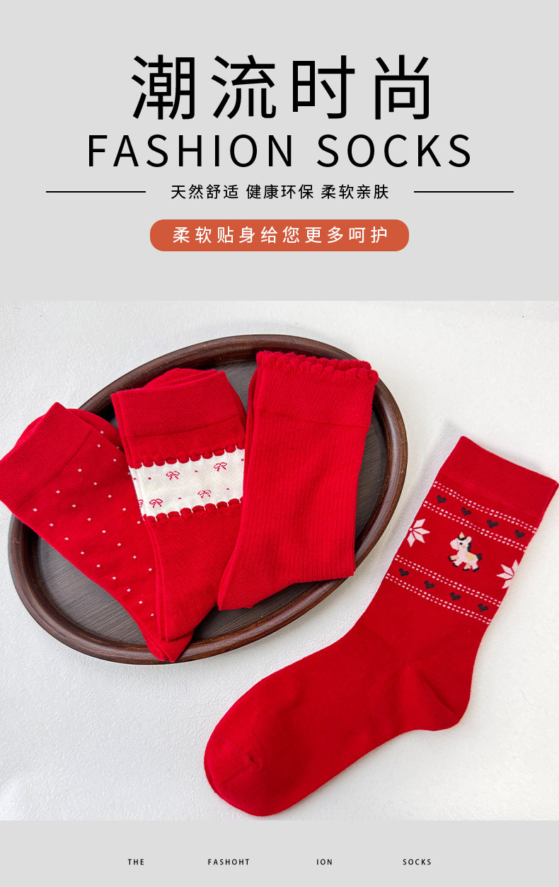 新年红色系袜子蝴蝶结点子中筒袜-纪念日百货门店同款167746074