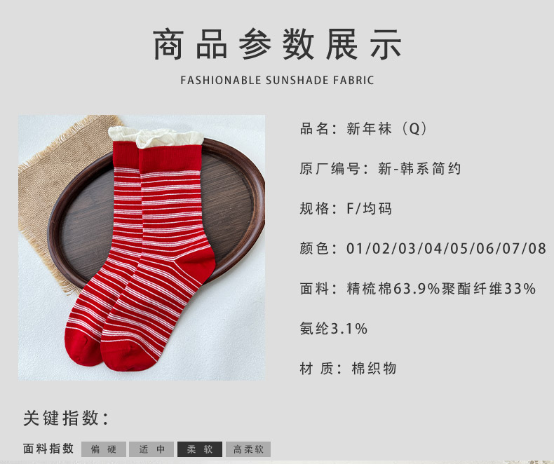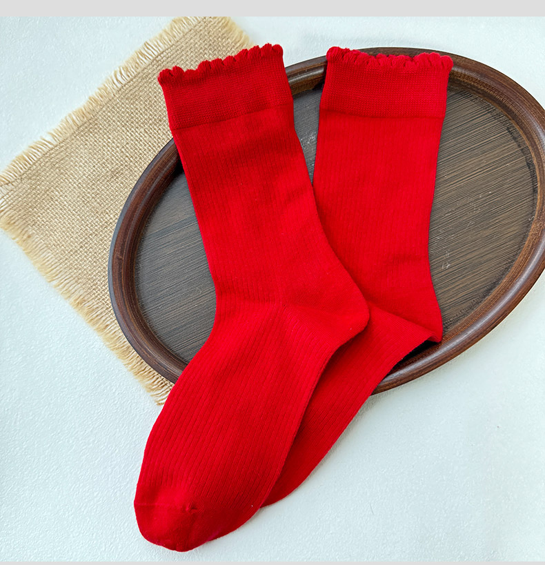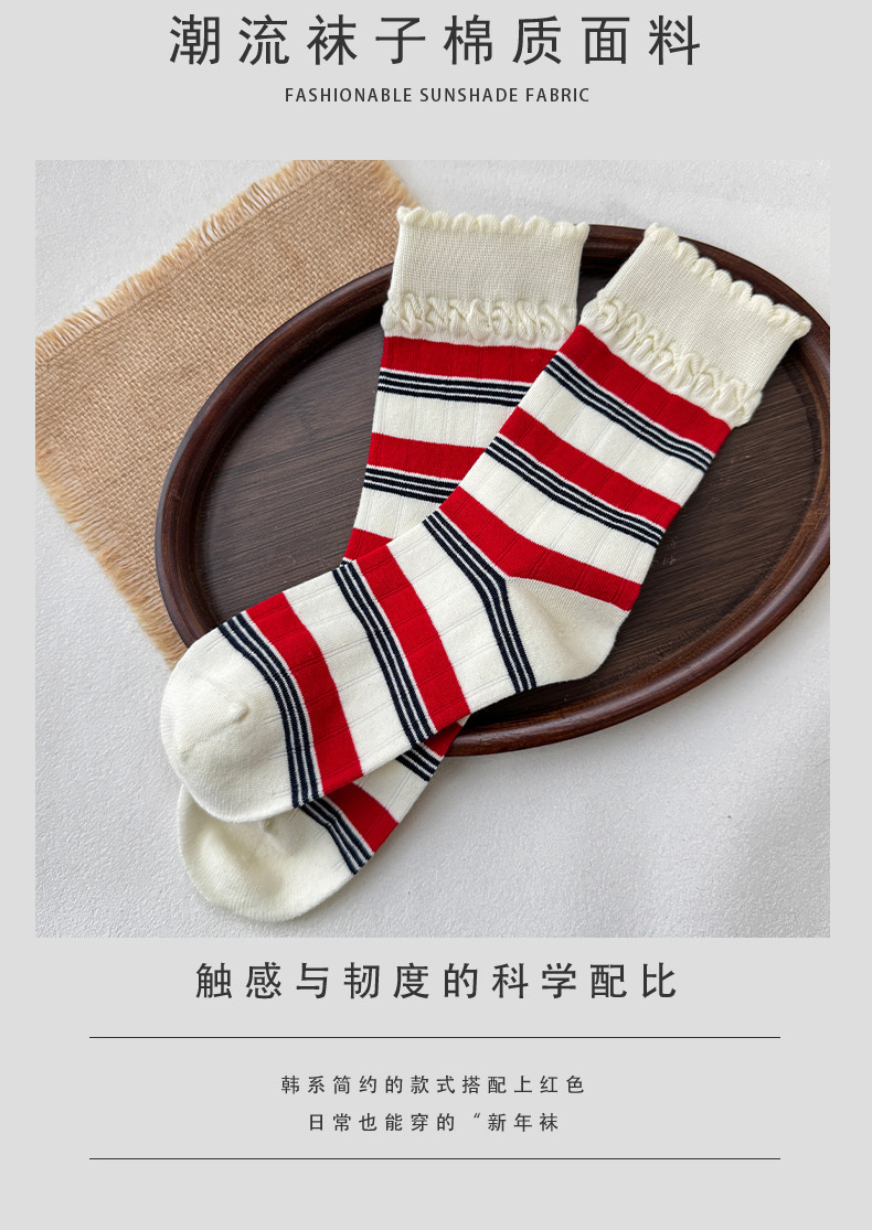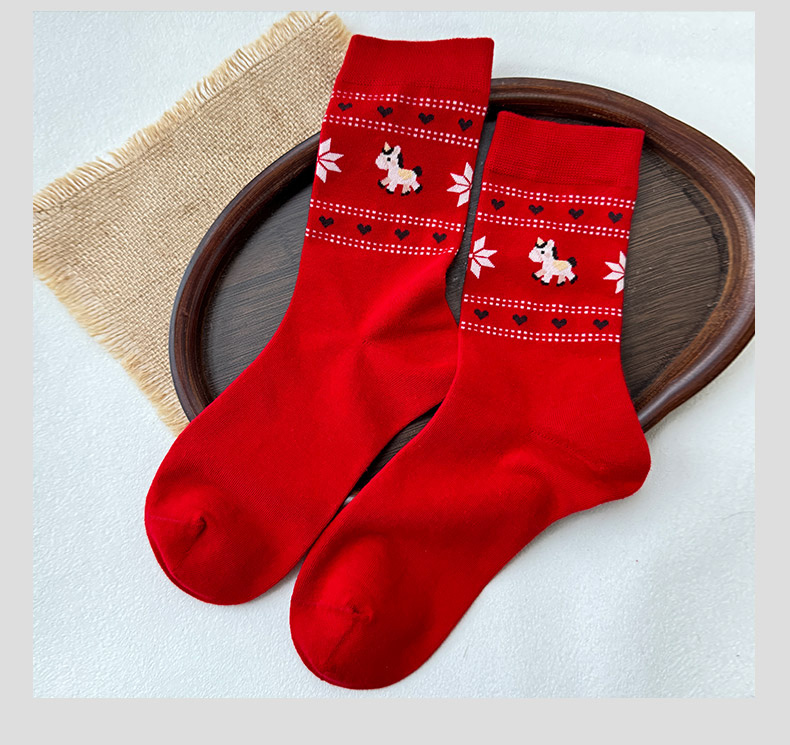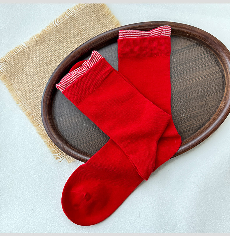 新年红色系袜子蝴蝶结点子中筒袜-纪念日百货门店同款167746074
