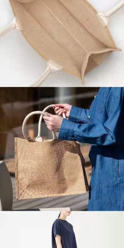(商场同款)日本手提袋复古风亚麻袋 B-9128