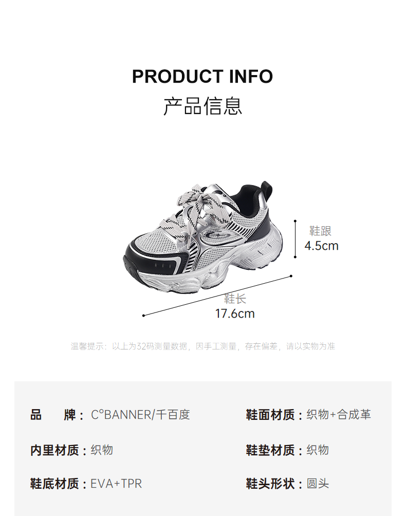 2楼千百度2025秋季潮酷机能感金属流光拼接鞋面运动鞋童鞋A25425606