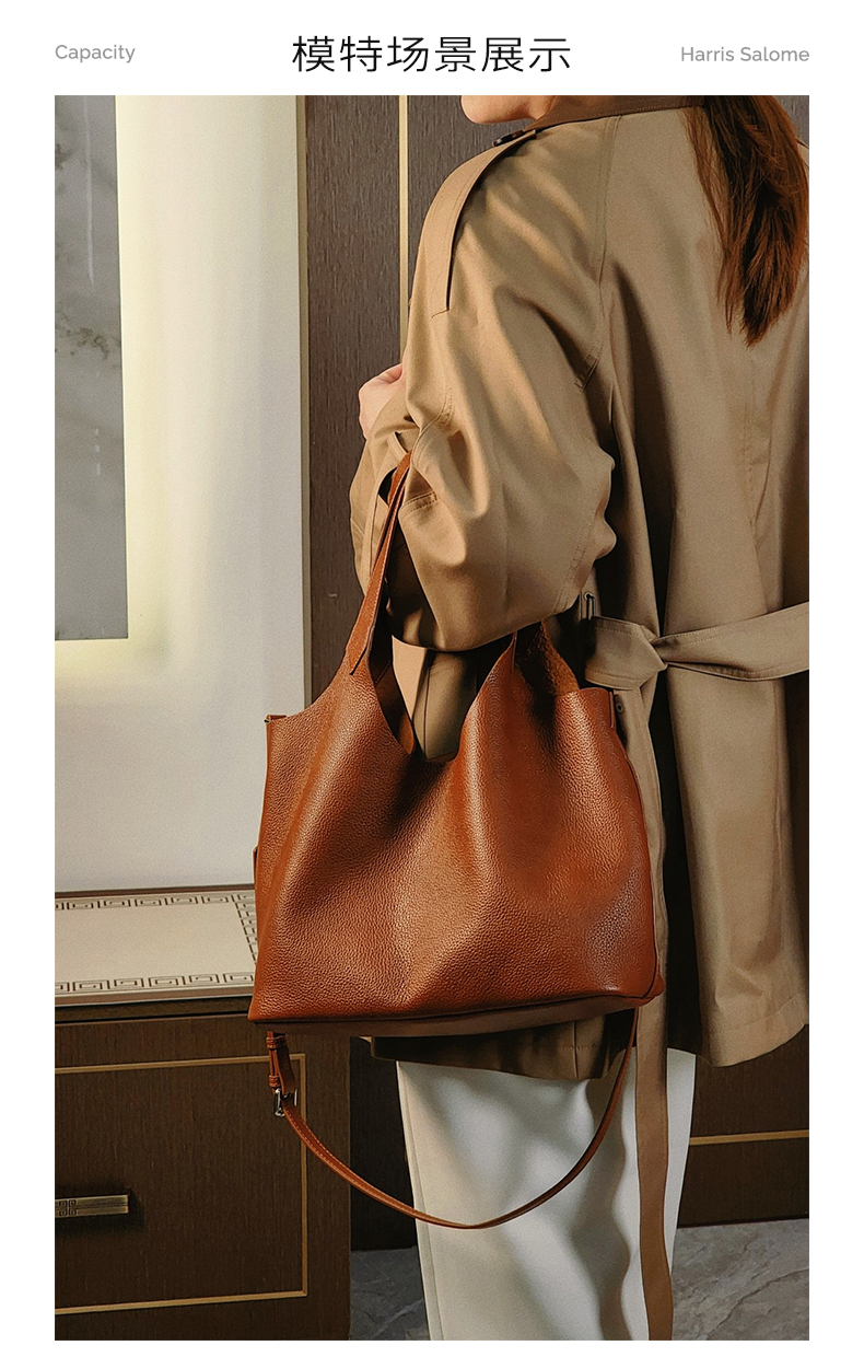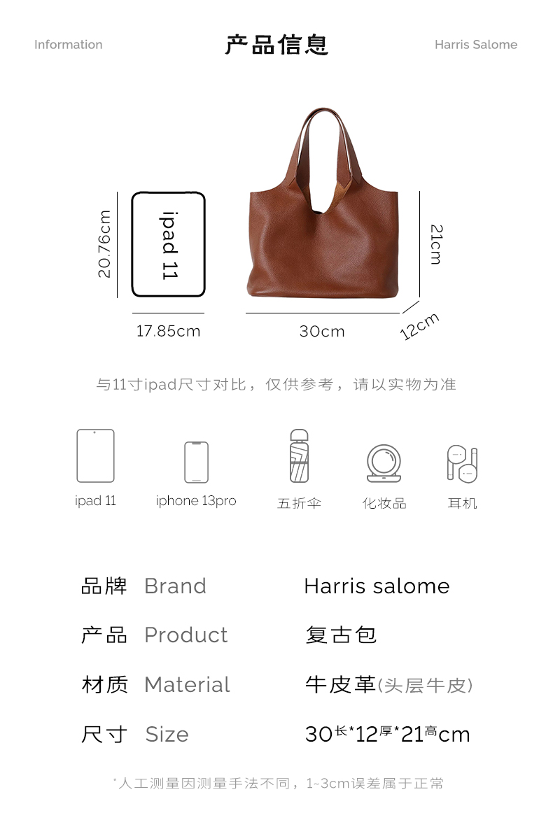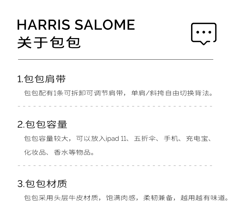 Harris Salome头层牛皮复古大容量通勤单肩斜挎包