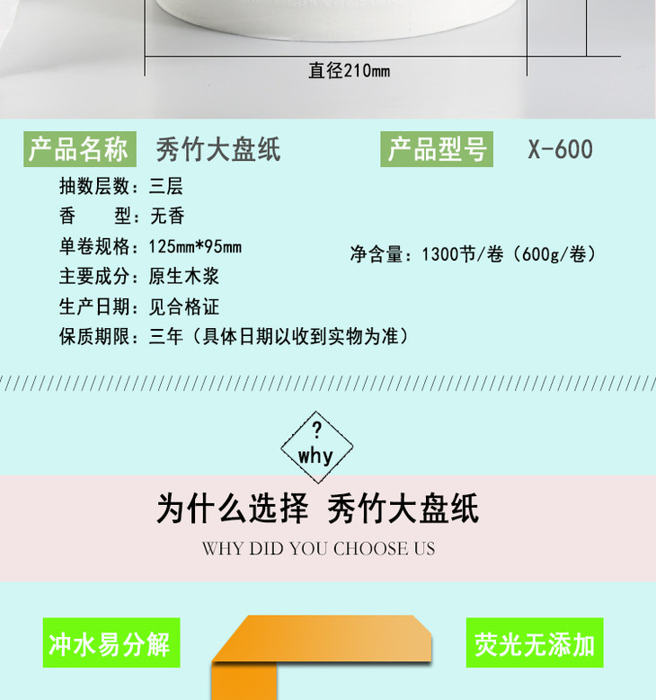 【平板纸】秀竹600克大卷纸大盘卷纸厕纸卷筒纸巾卫生纸