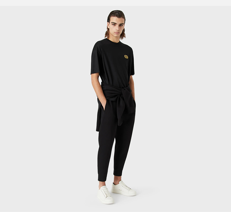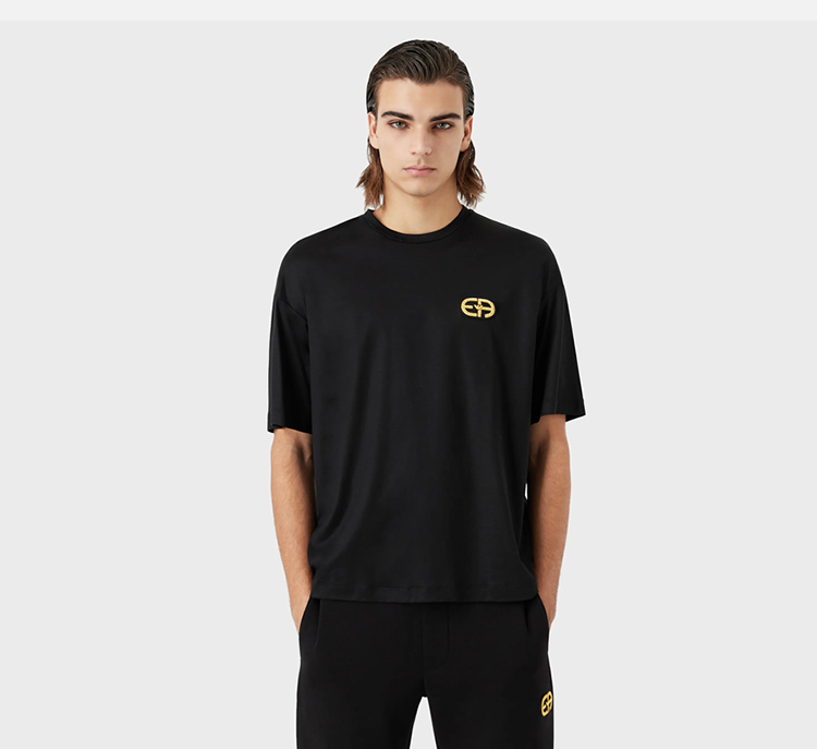EMPORIO ARMANI 阿玛尼 男士棉质徽标贴花圆领短袖T恤 黑色 6L1TA3 1JUVZ 0999