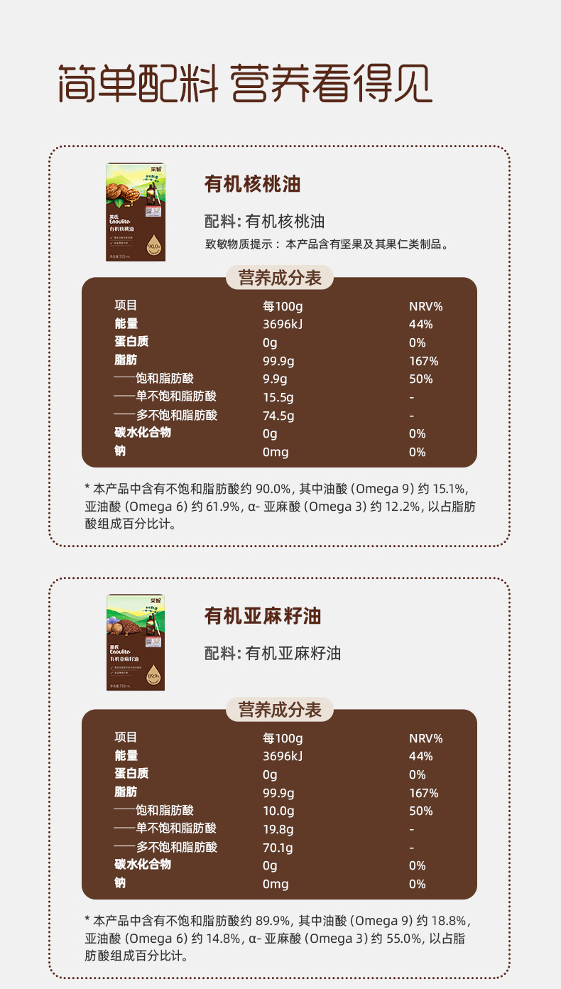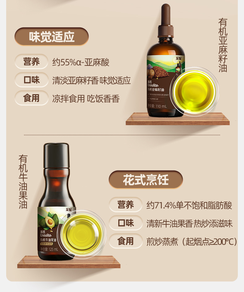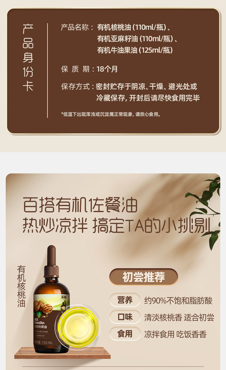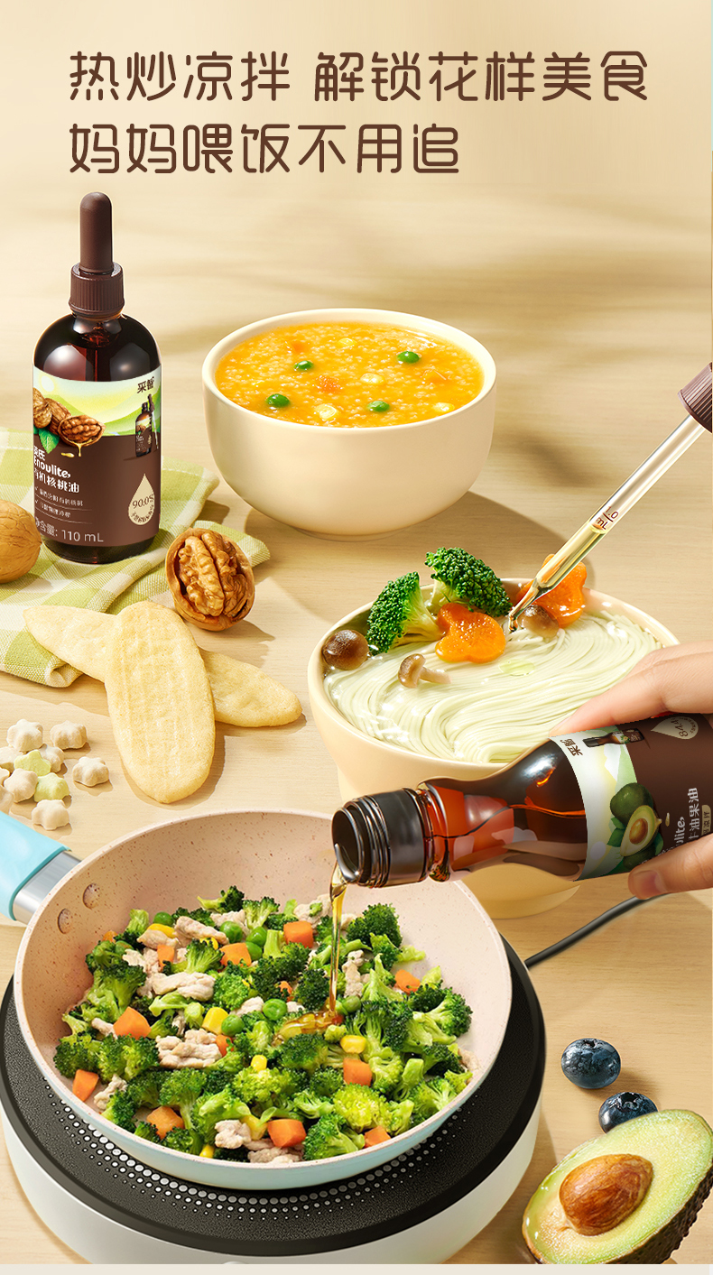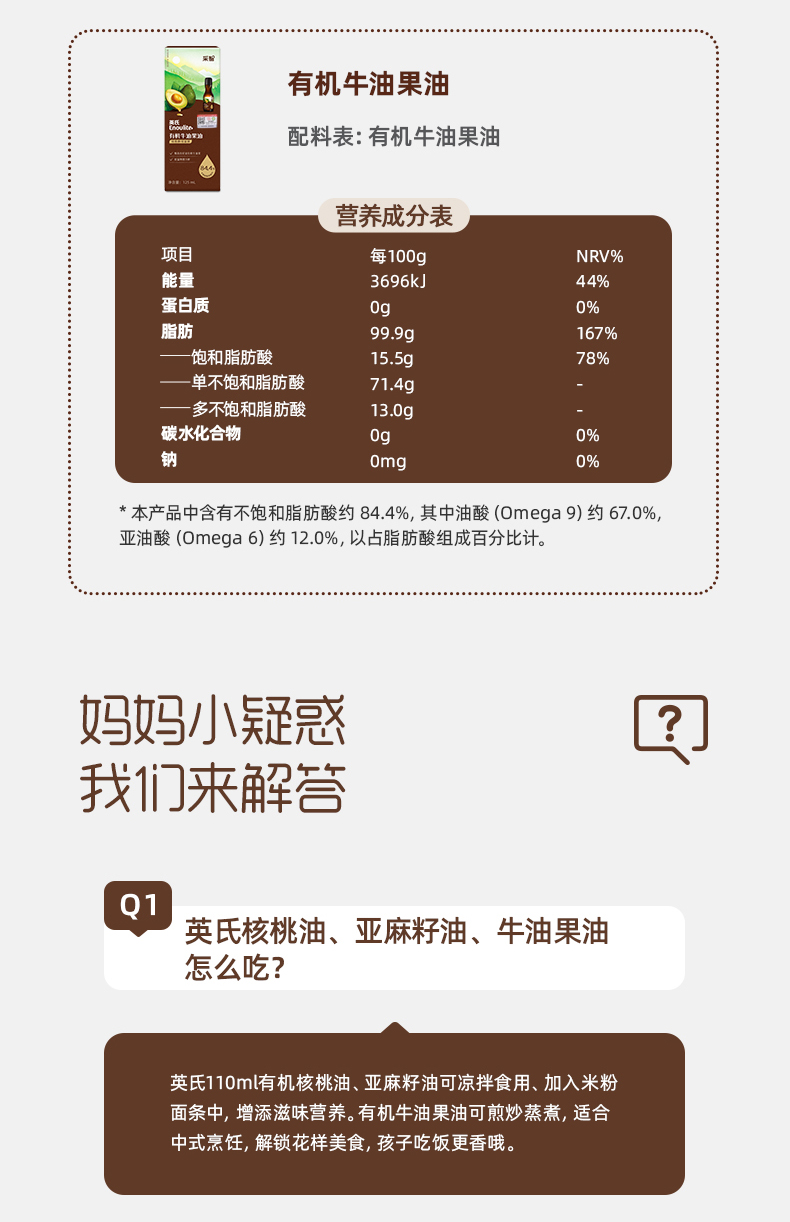【品牌直发】英氏有机核桃油冷榨辅食油110ml添加滴管/亚麻籽油/牛油果油