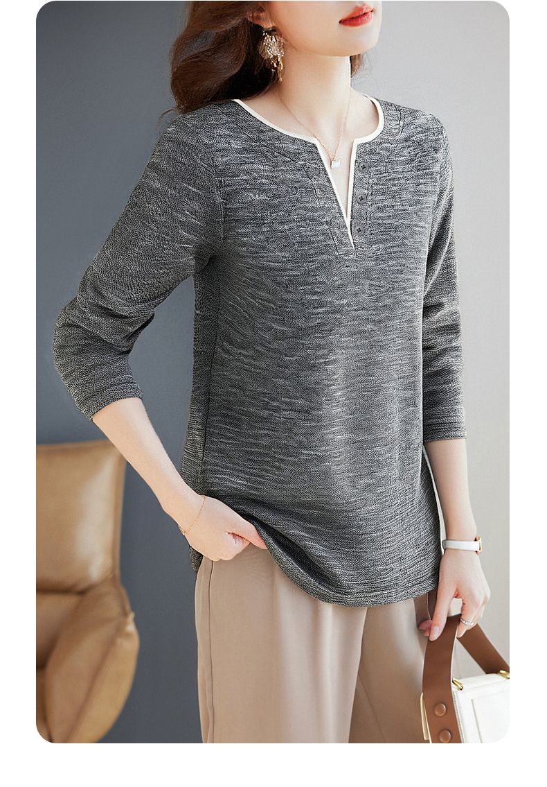 高端品牌女士t恤秋季大码V领打底衫新款女装高级洋气长袖妈妈上衣