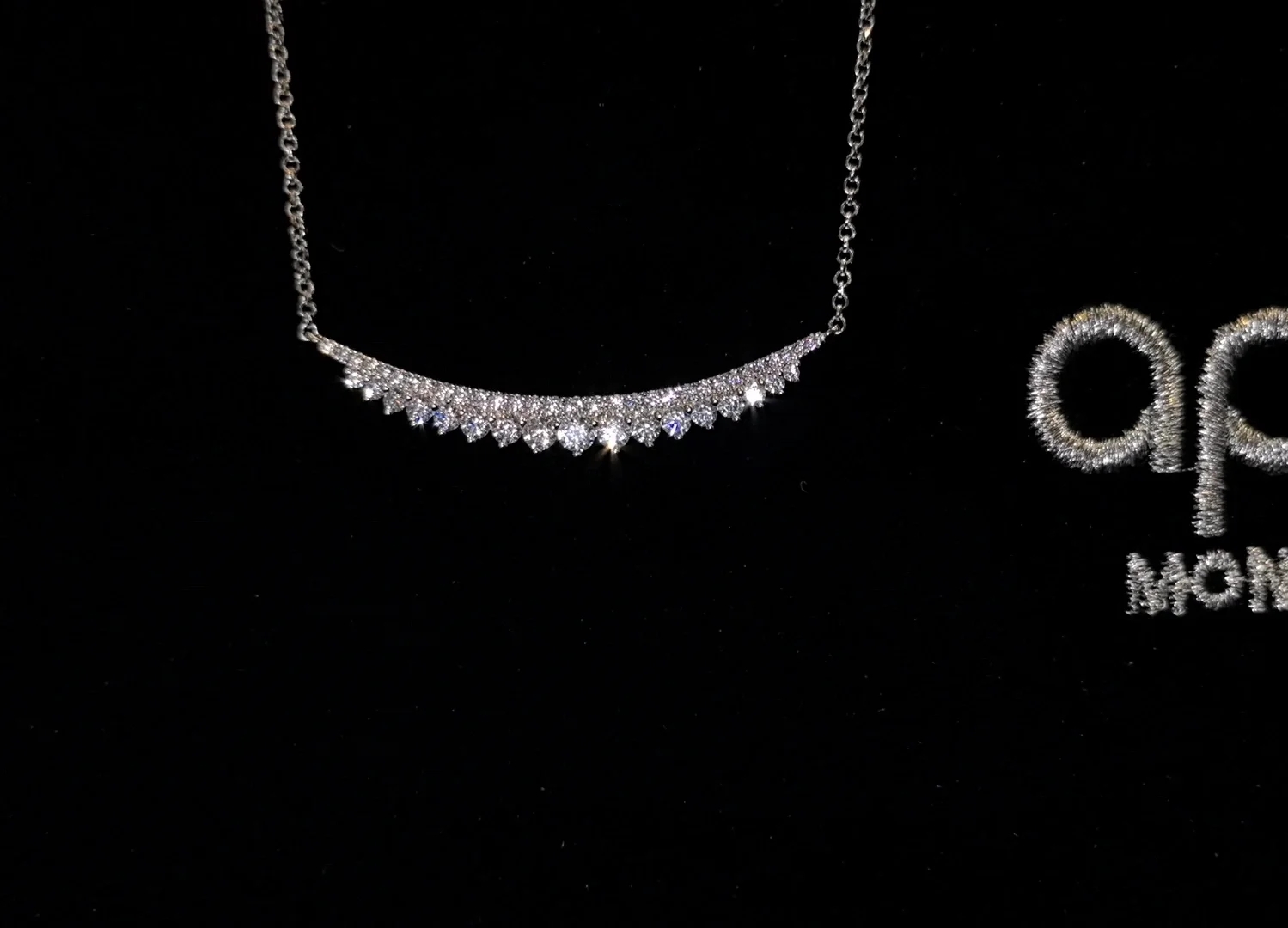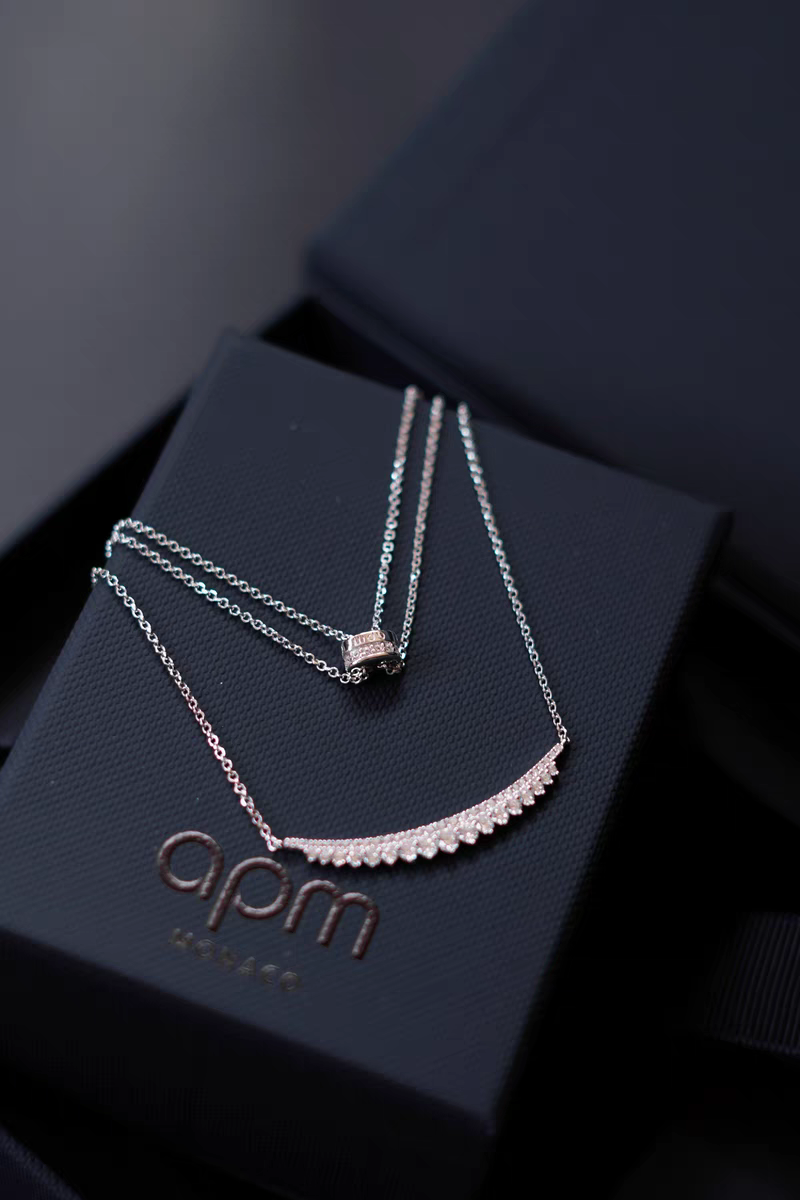 项链融入了多种不同尺寸的银白锆石,中间大往两边依次变小,呈现微笑形态,整个灵动感拉满!超级温柔超级好看!可调节划扣设计,长度根据造型灵活调节!