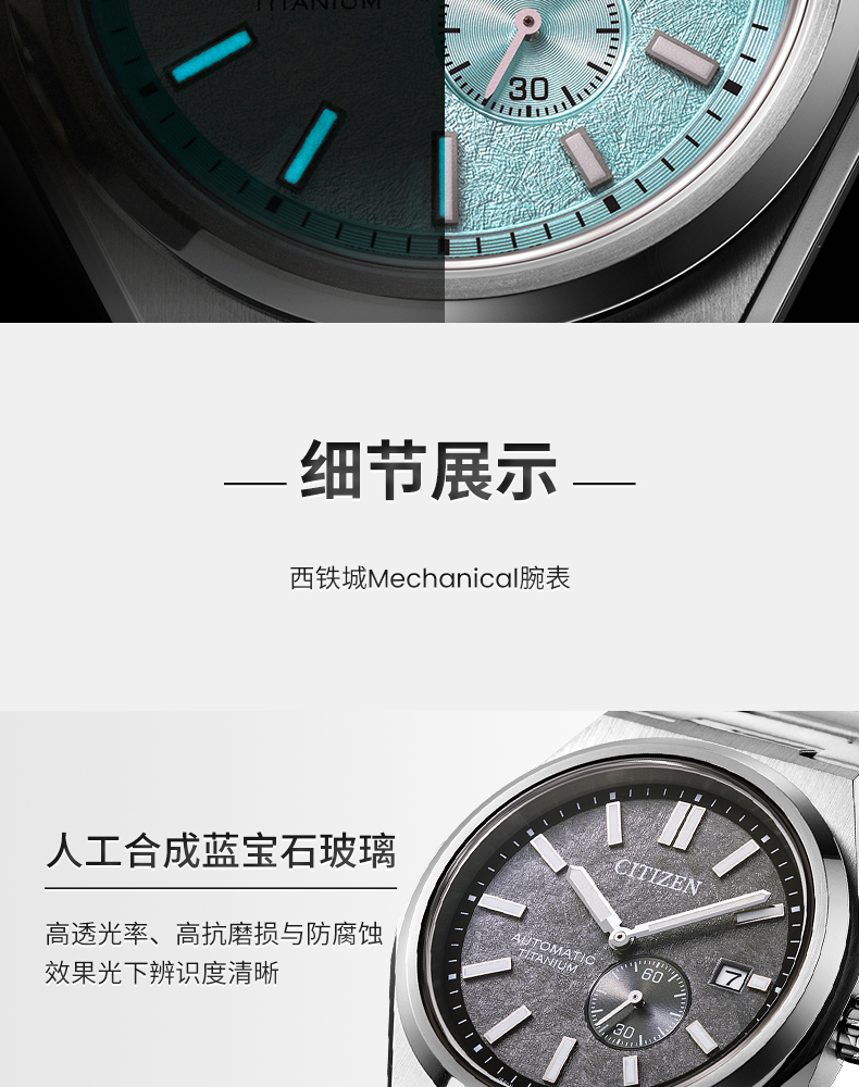 西铁城/CITIZEN新款机械表舒博钛腕表商务休闲男表NJ0180-80H