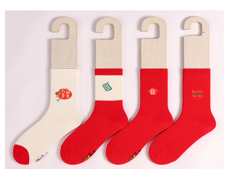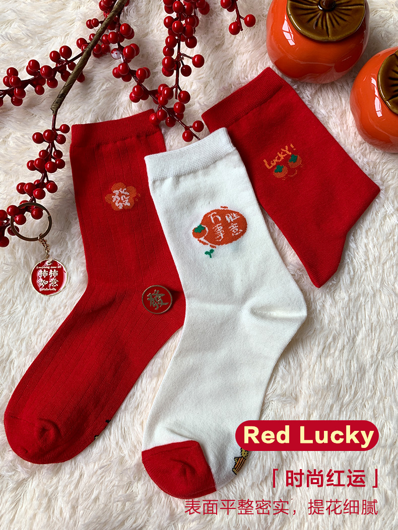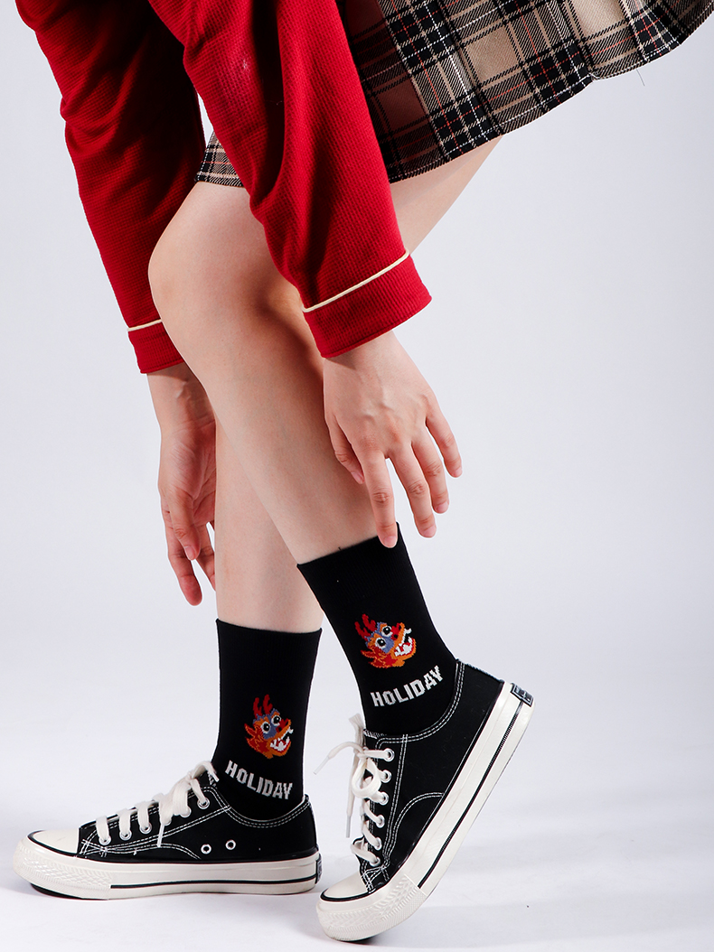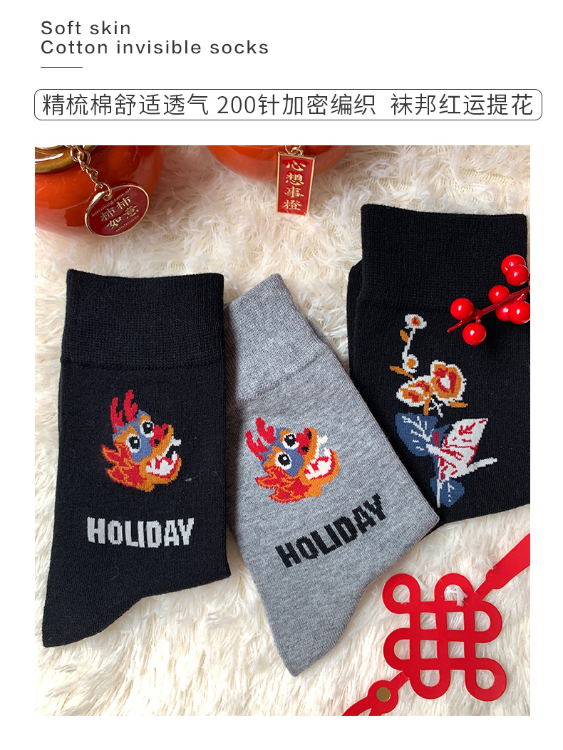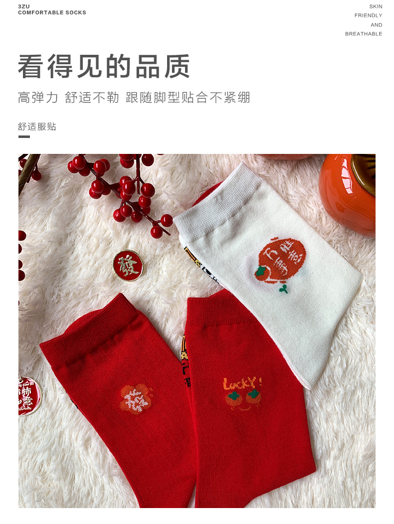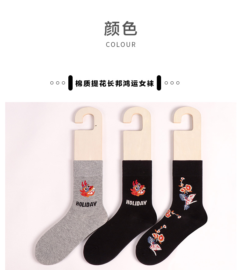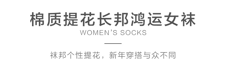 足装秀新品女棉质长筒袜龙年红运喜庆提花袜新年送礼长邦女袜子