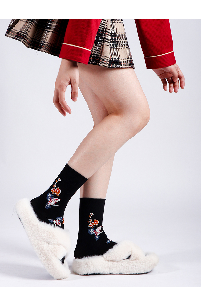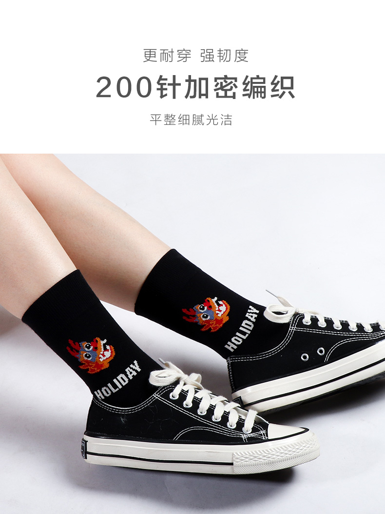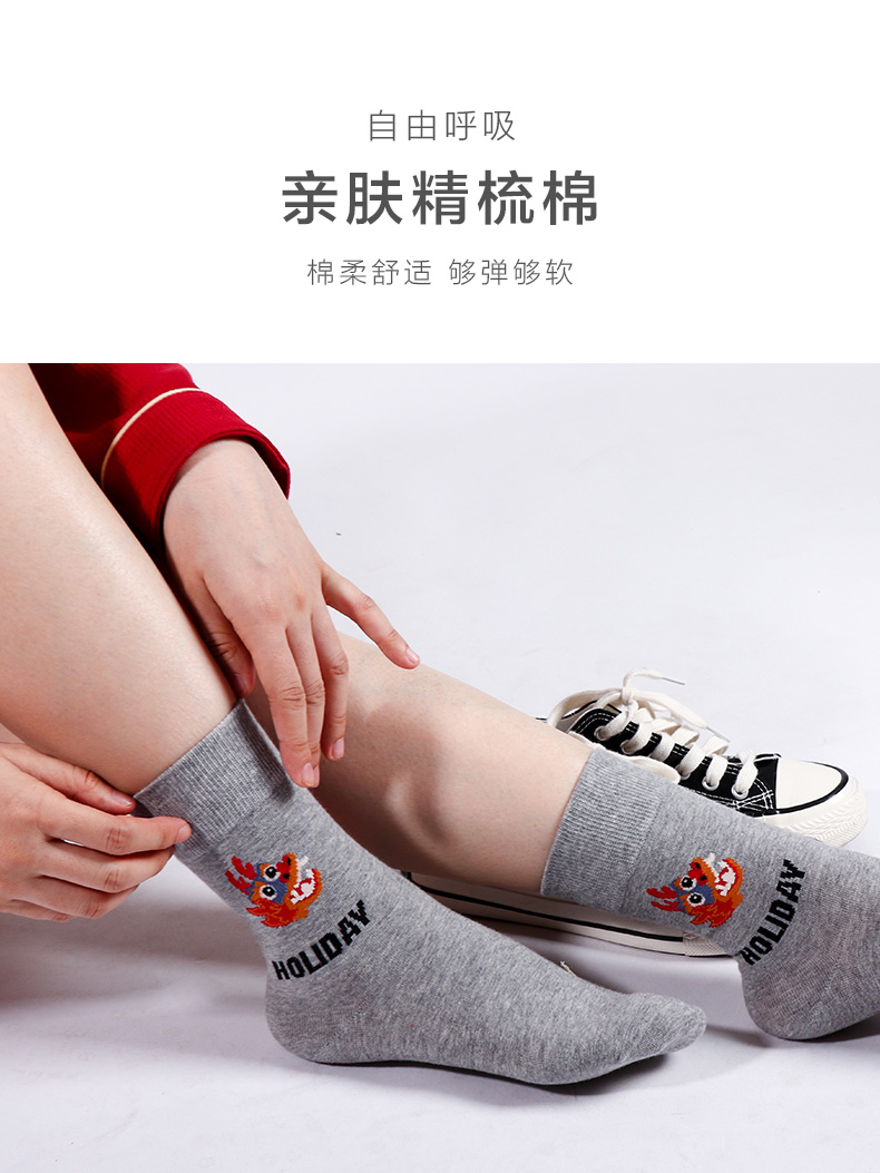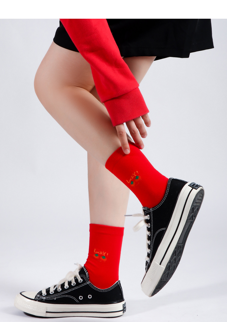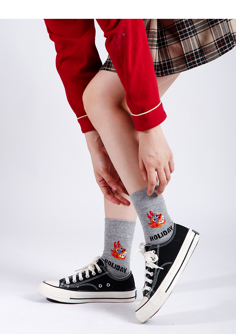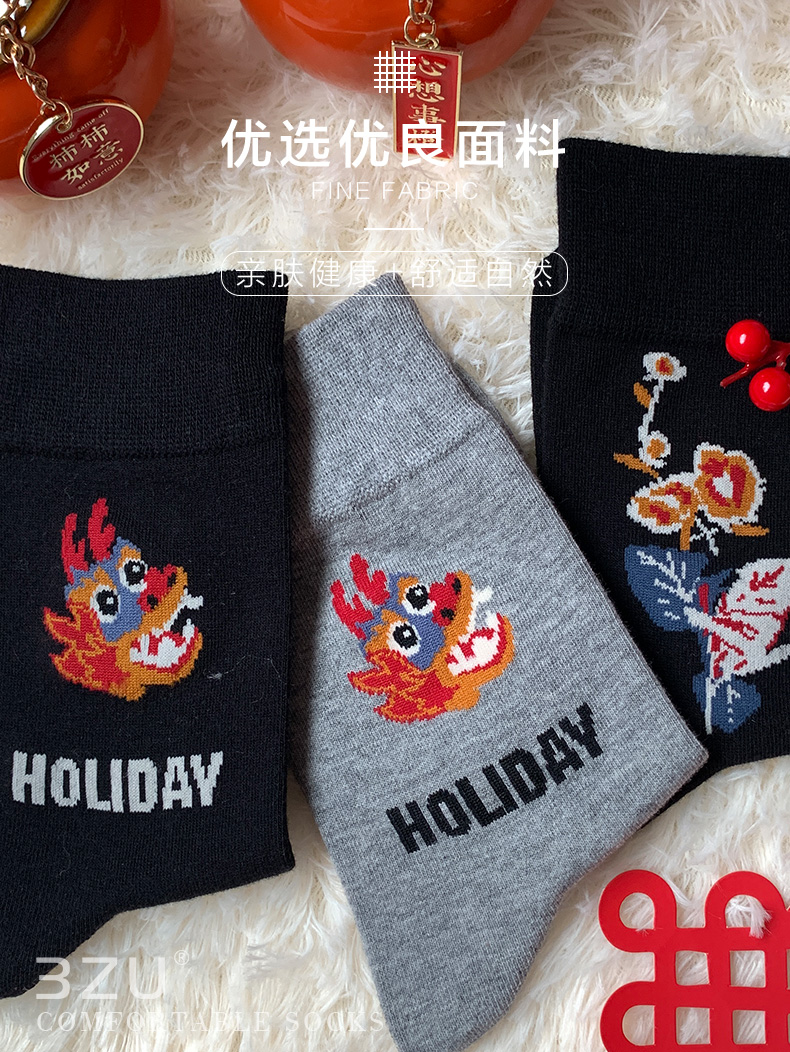 足装秀新品女棉质长筒袜龙年红运喜庆提花袜新年送礼长邦女袜子