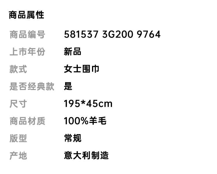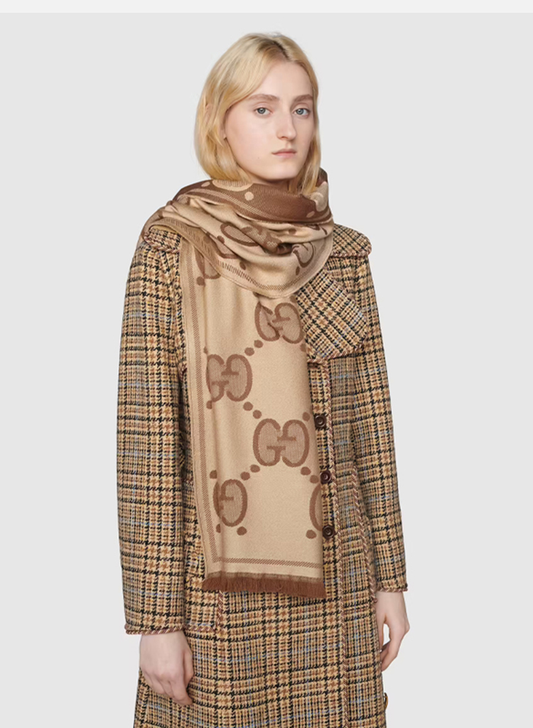 【三】GUCCI 古驰 女士GG羊毛提花围巾 混色 581537 3G200 9764