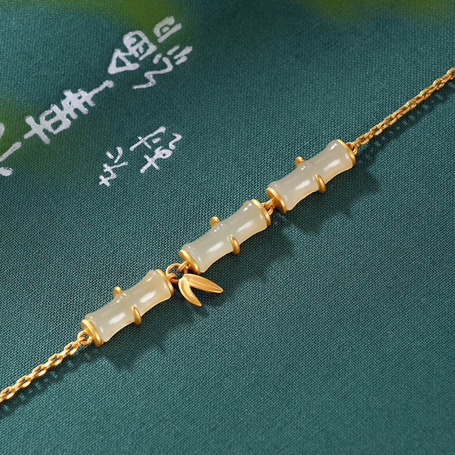【寓意】:手链以“竹节”为灵感设计,镀金与镶嵌工艺交融,复古祥和,清峻脱俗。寓意节节高升,长寿安康。