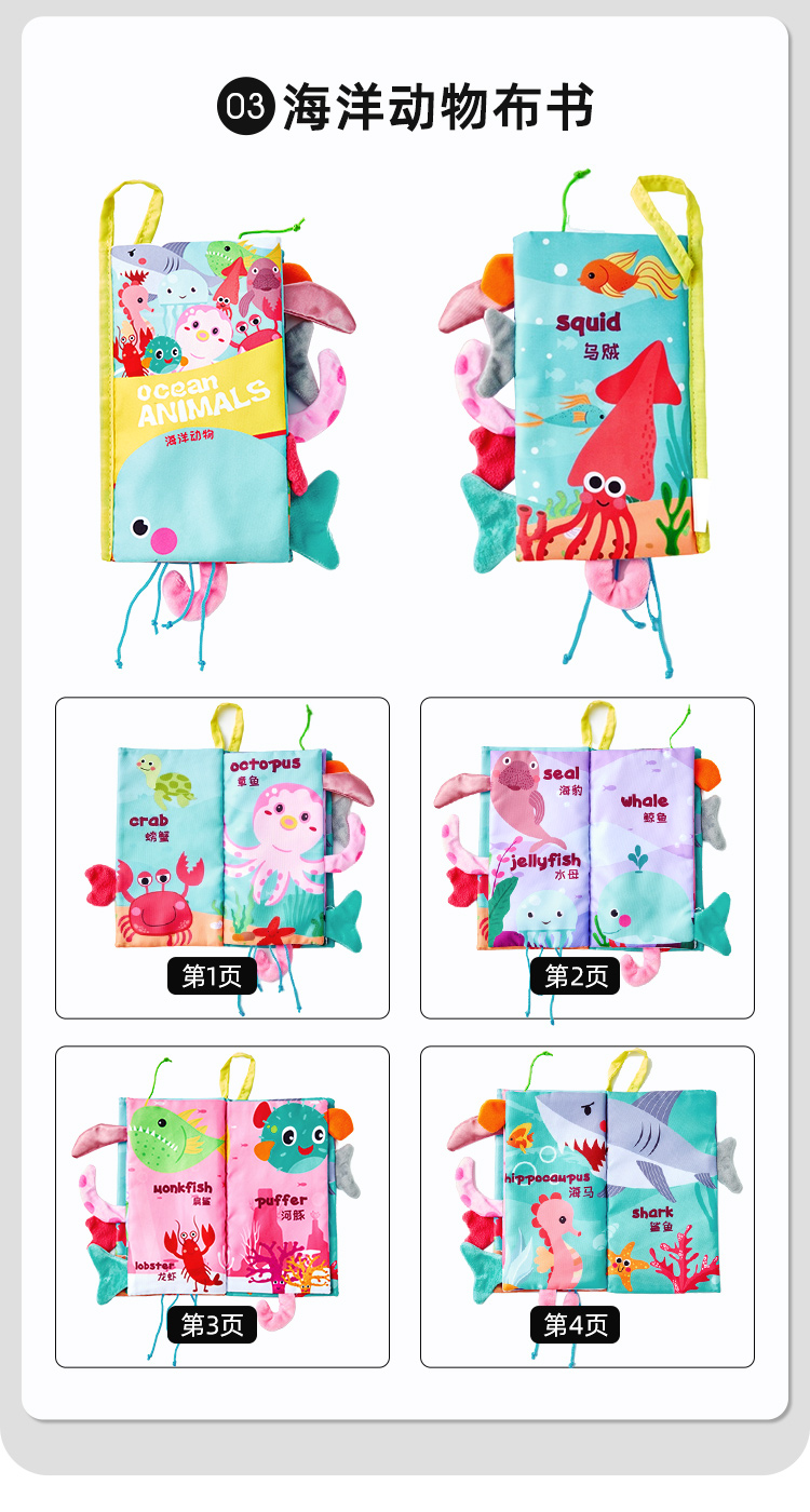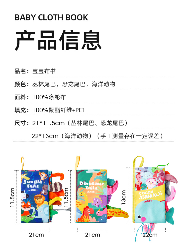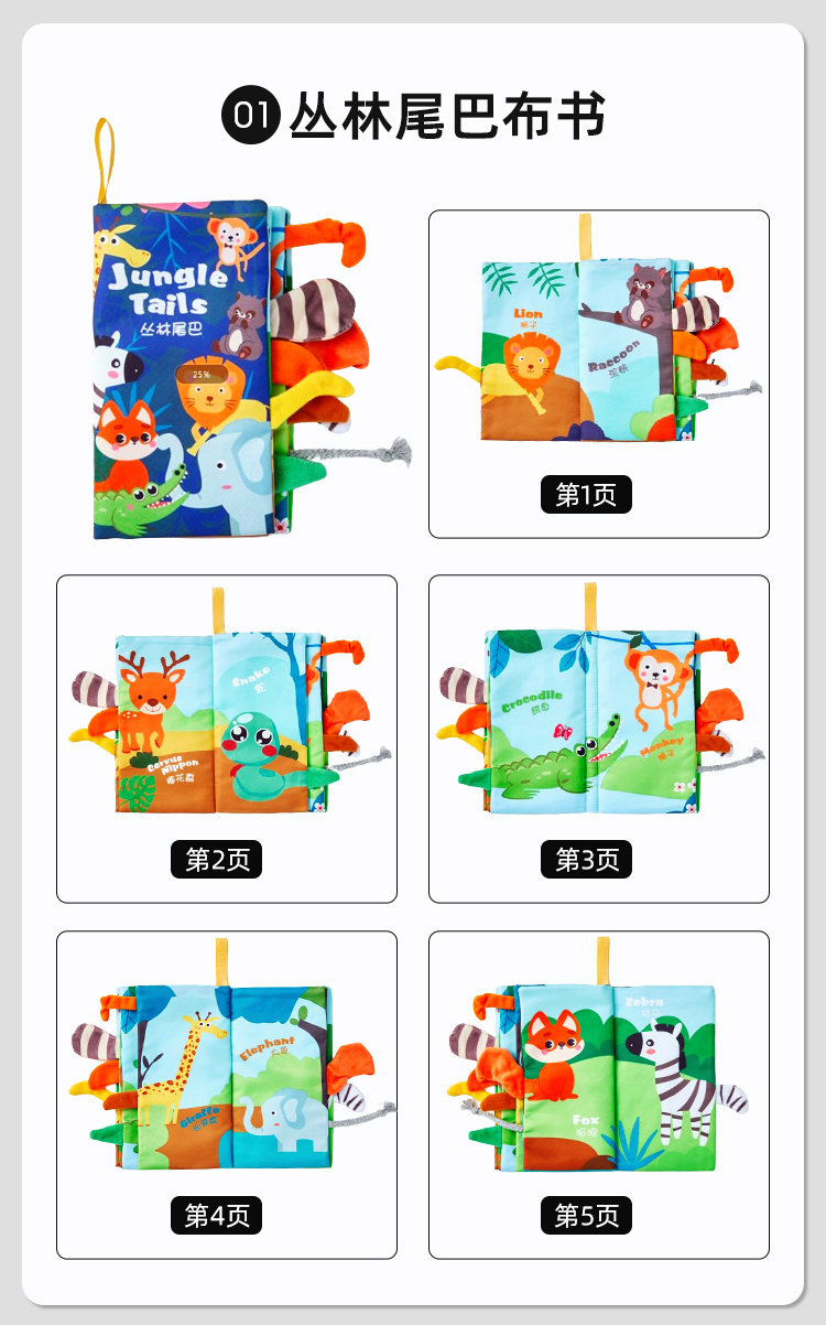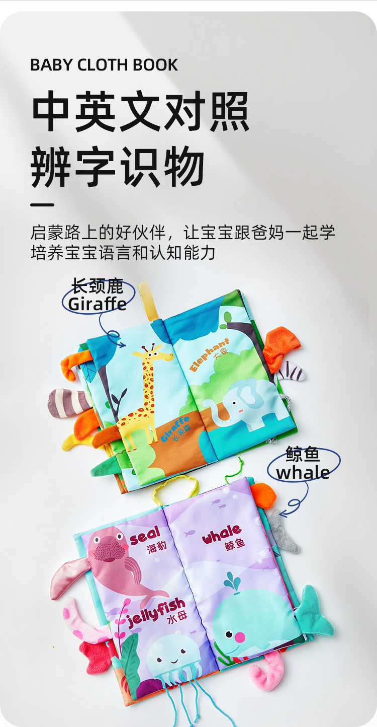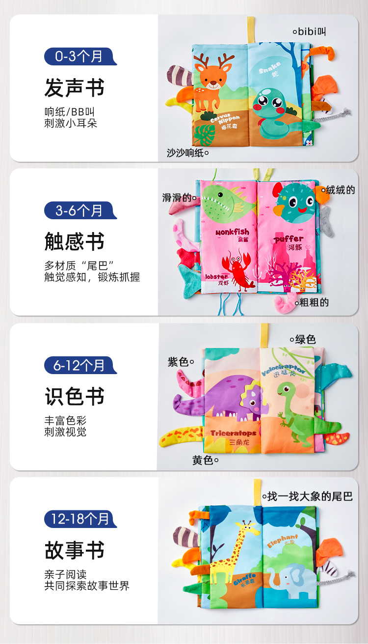 imomoto 尾巴布书幼儿宝宝婴儿撕不烂可啃咬早教0-6个月认知益智玩具0-1岁