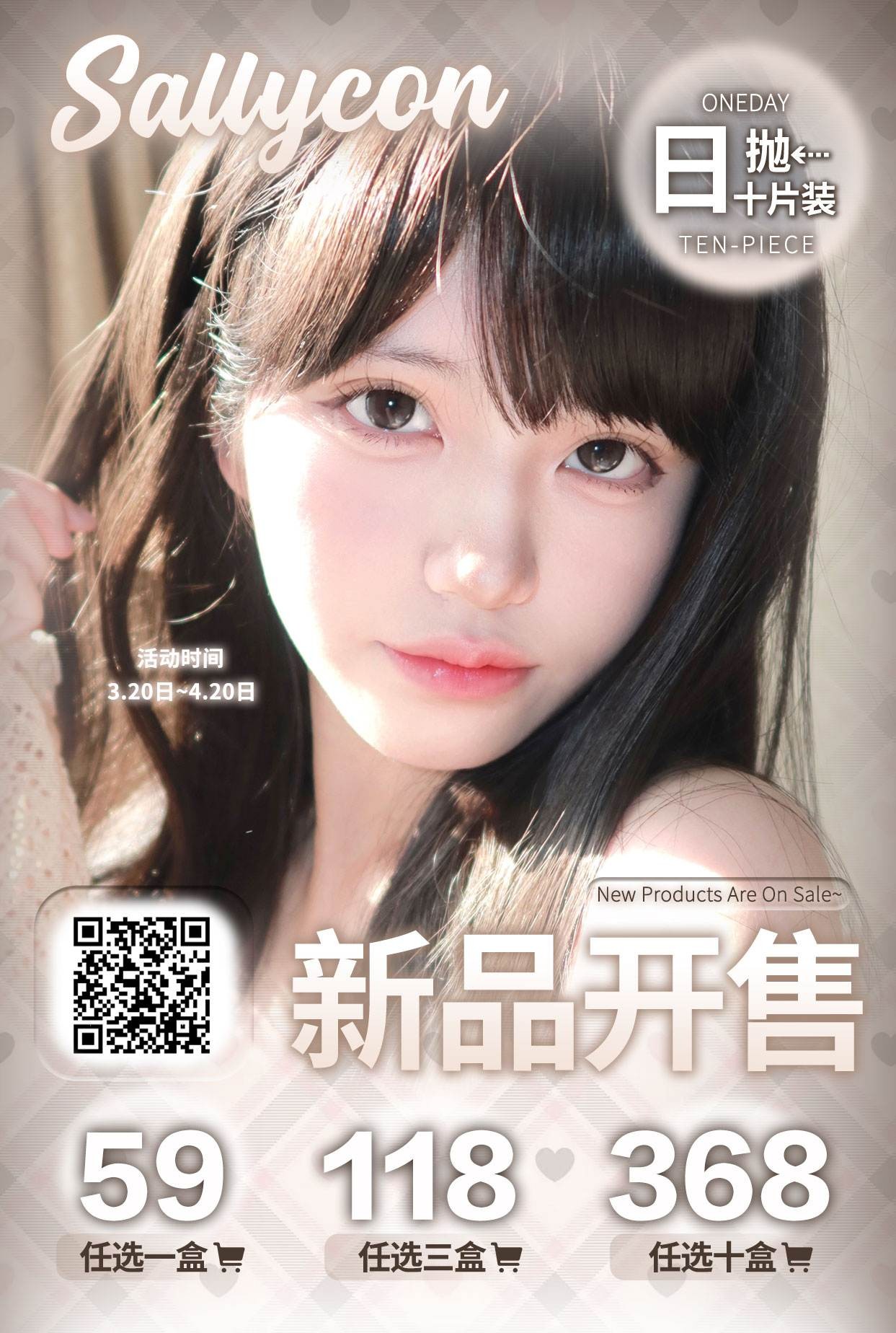 sallycon日抛59/盒108/3盒358/10盒,奶油灰蜜桃丸黑葡萄水星环沙漠玫瑰