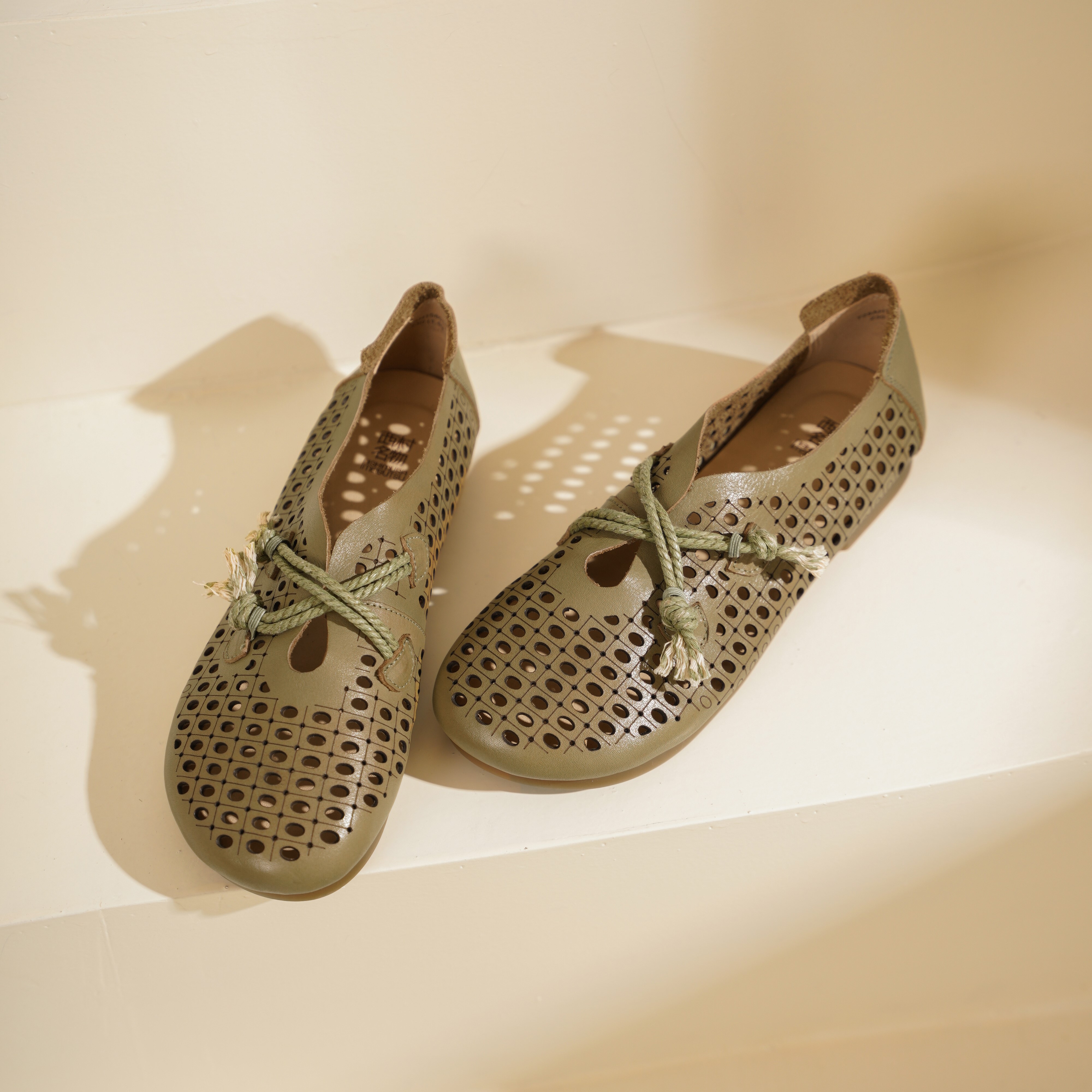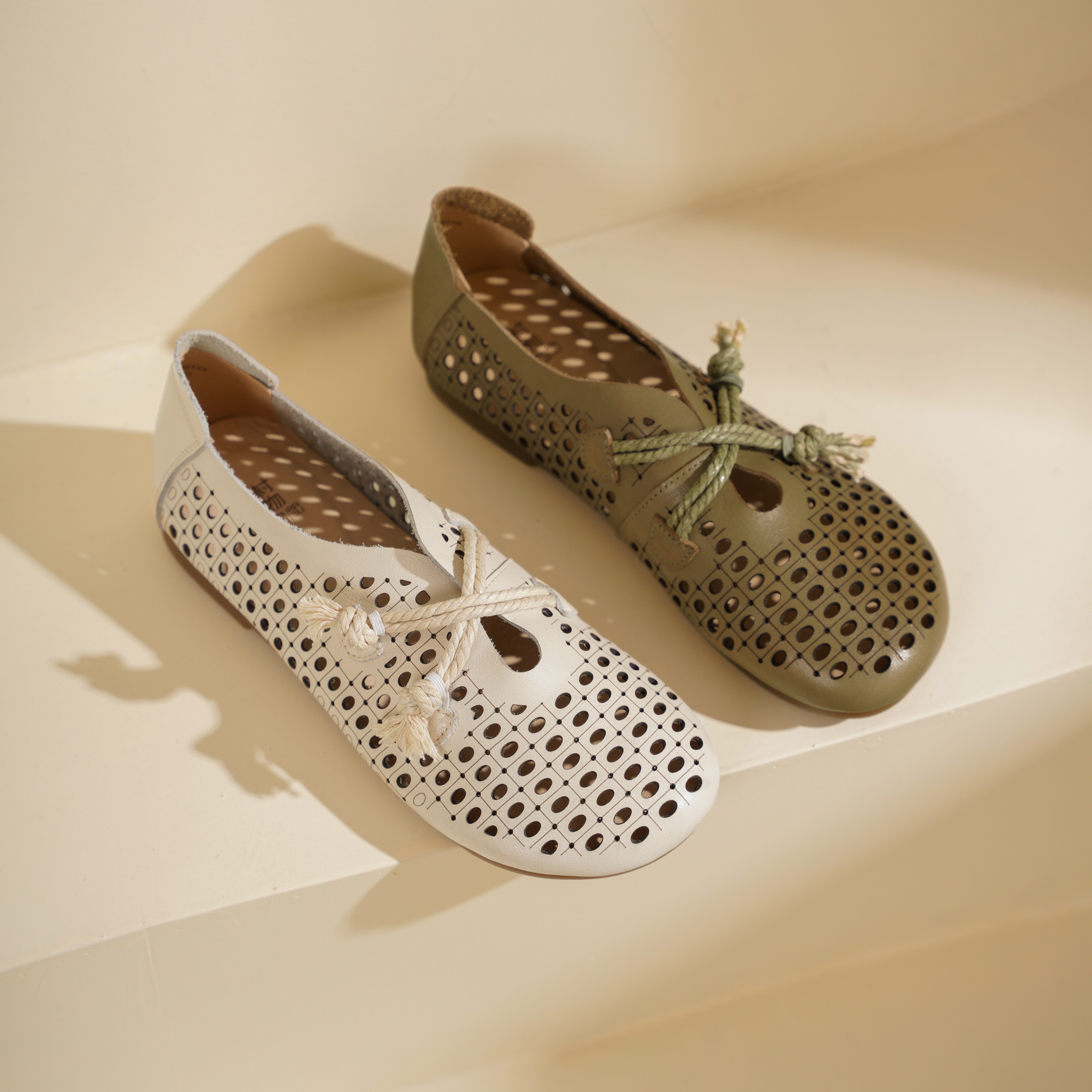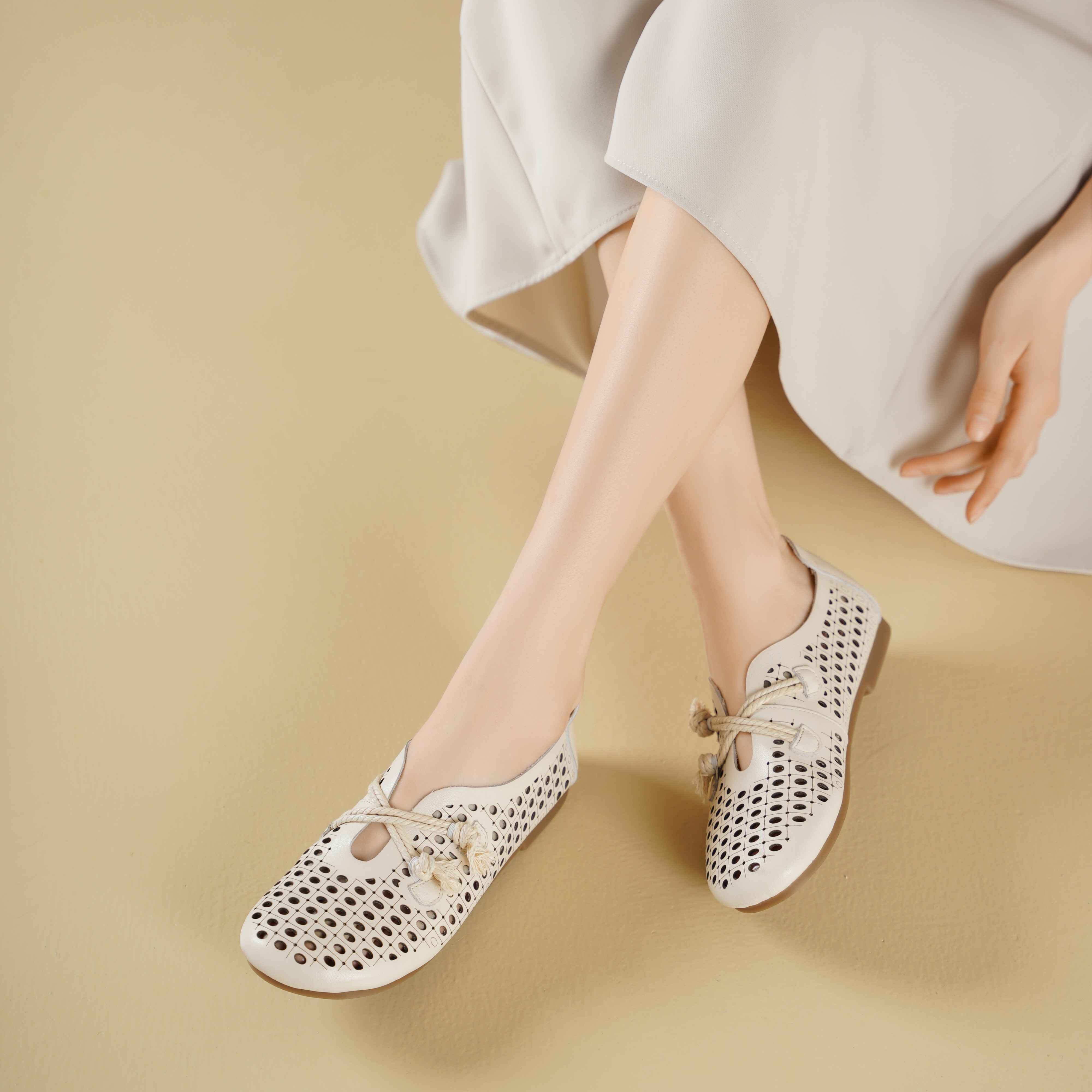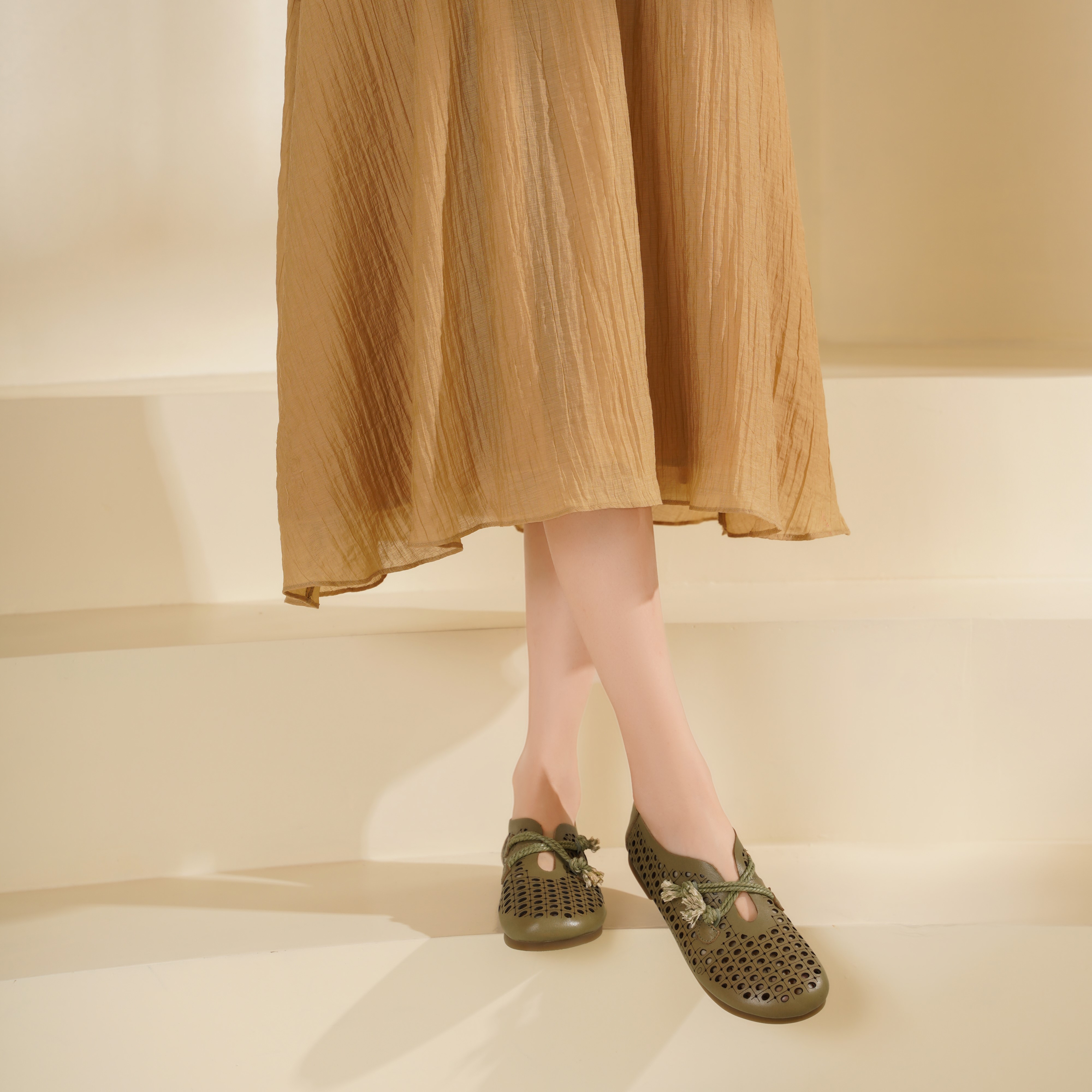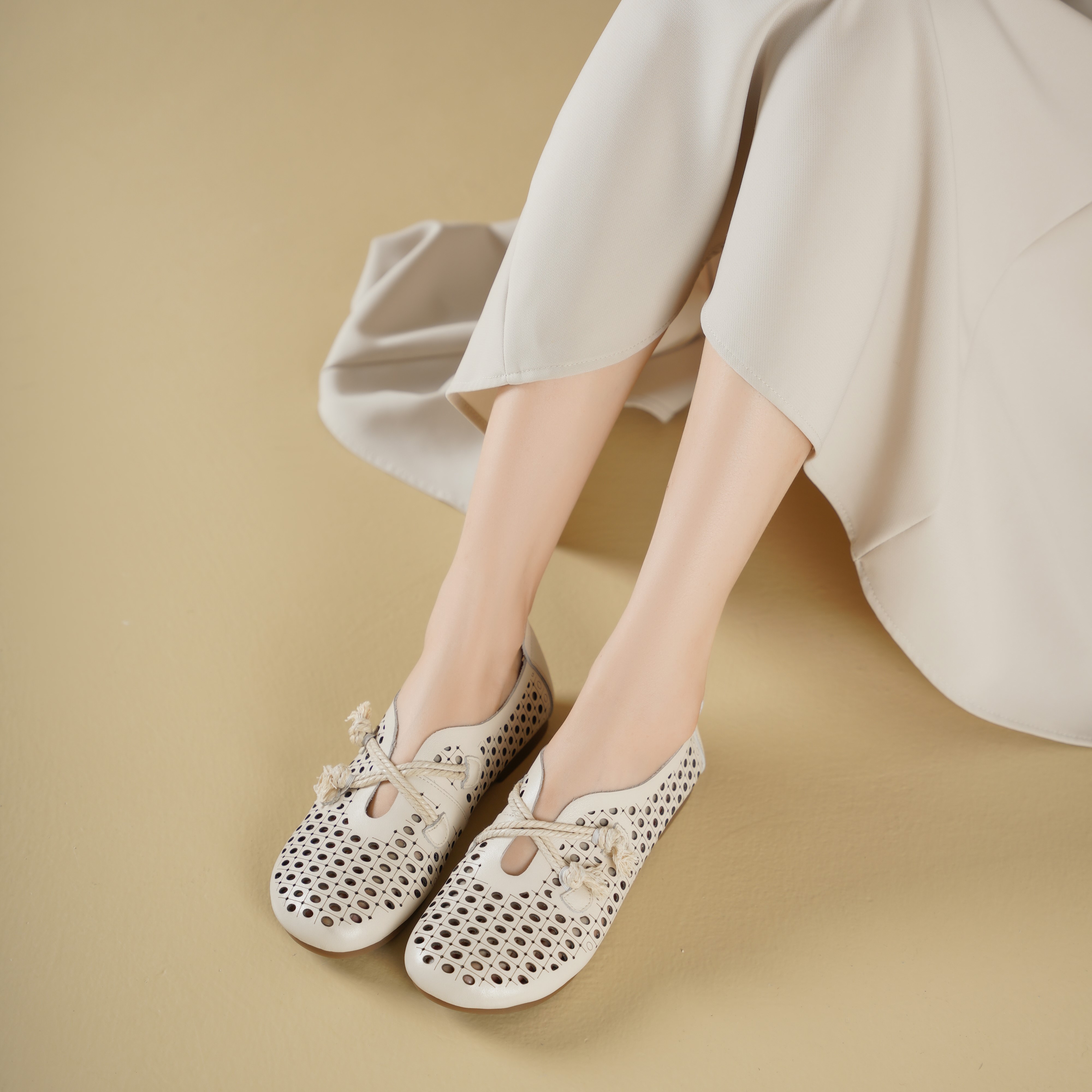 西村名物2025年夏季新款舒适平跟新中式风优雅镂空洞洞单鞋T25AH15801