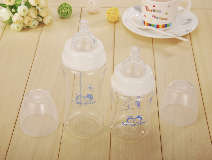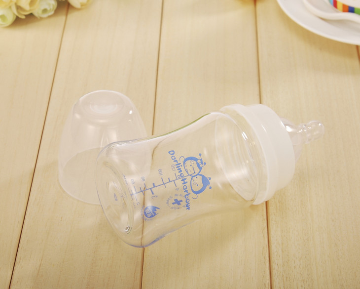 蜜儿港宽口径晶钻玻璃弧形奶瓶250ML\MA040#(彩虹版)