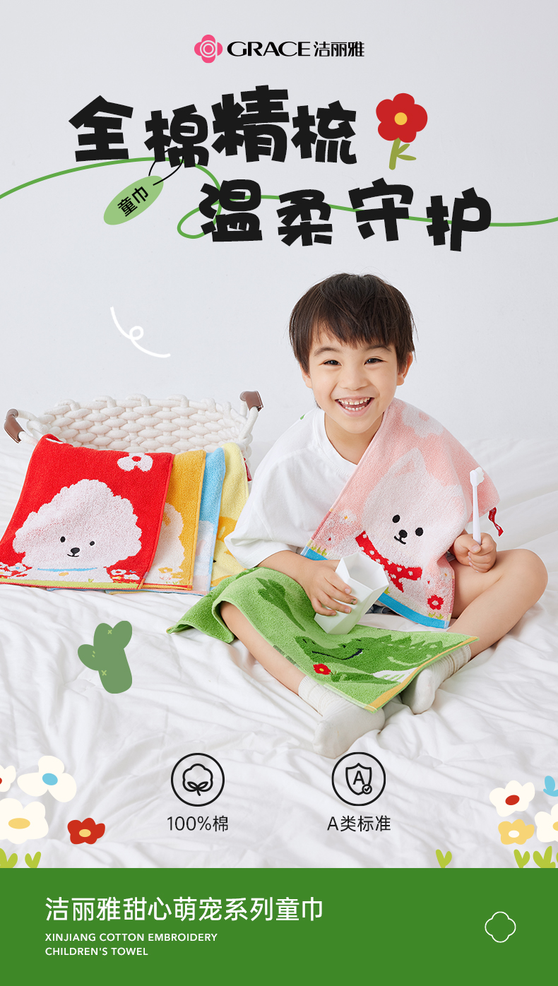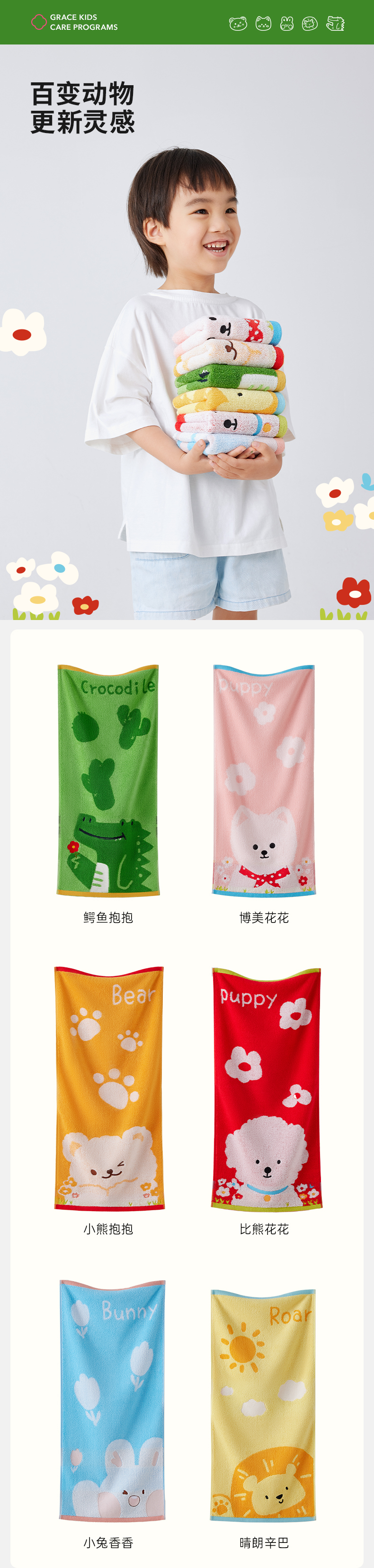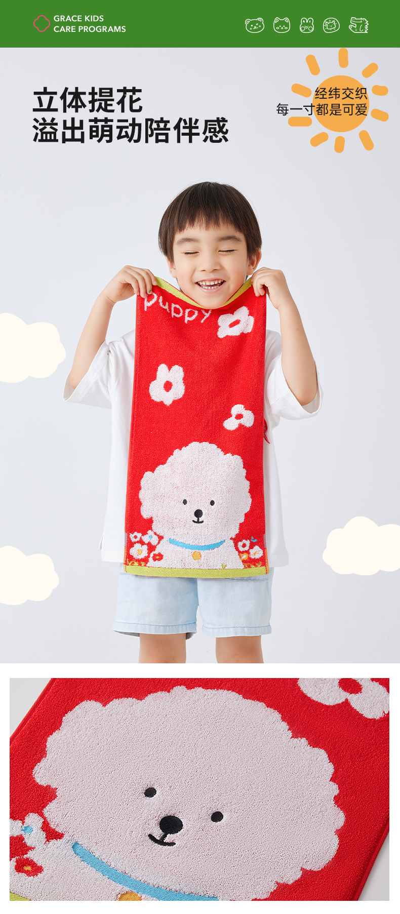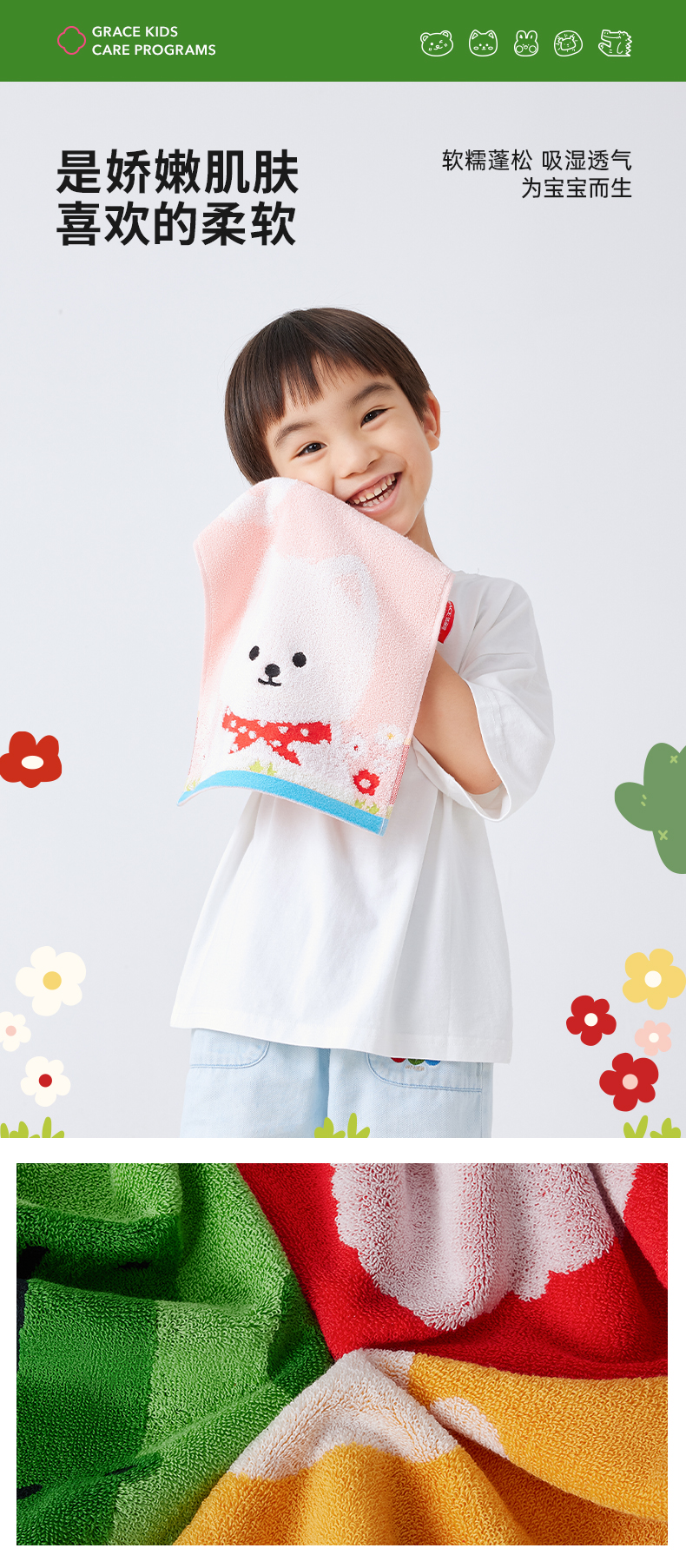 洁丽雅纯棉童巾萌宠系列超柔软吸水宝宝洗脸洗澡专用小毛巾不掉毛