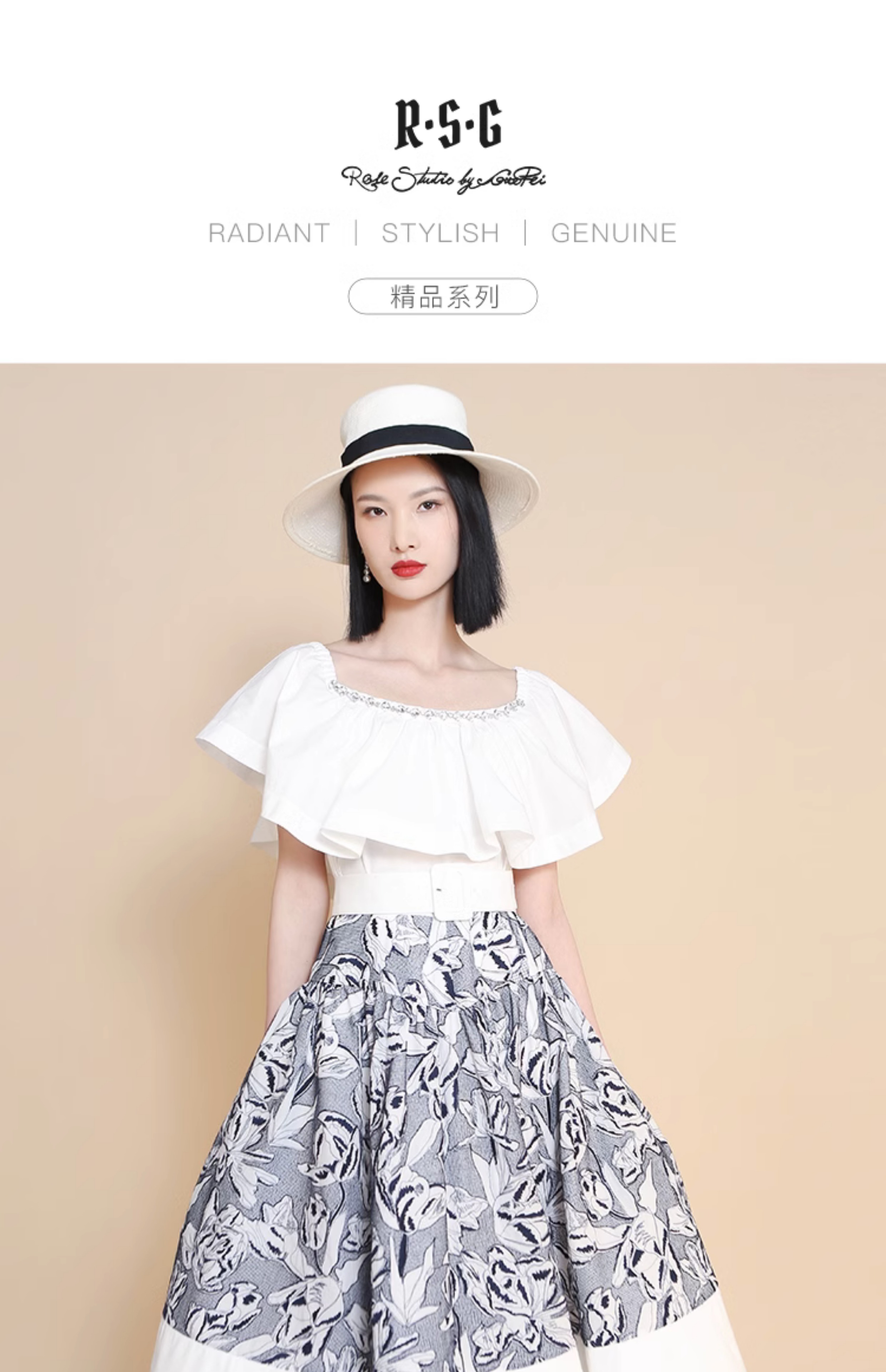 RSG郭培成衣品牌原创度假风纯棉刺绣设计感大摆量半身裙 春夏