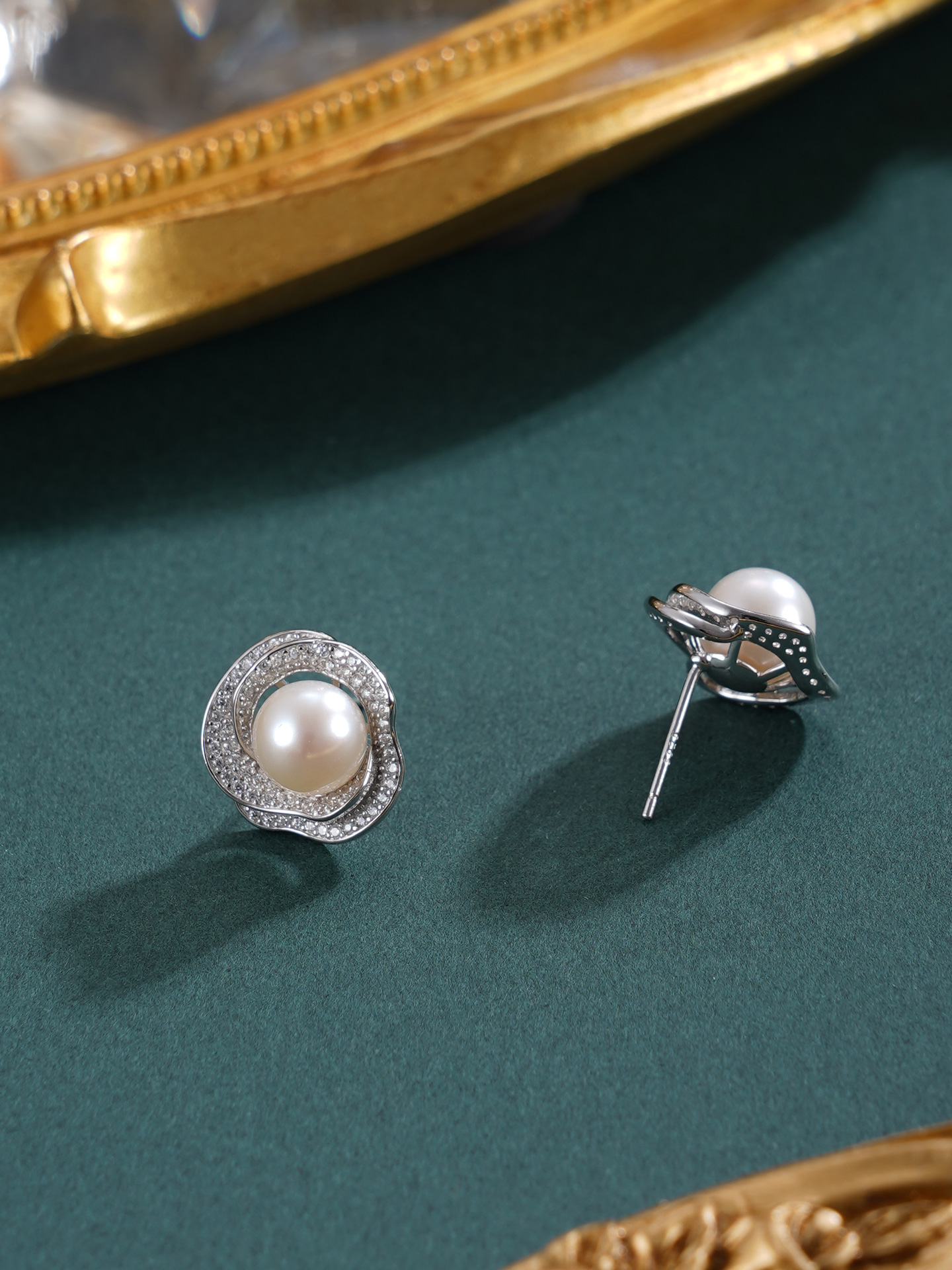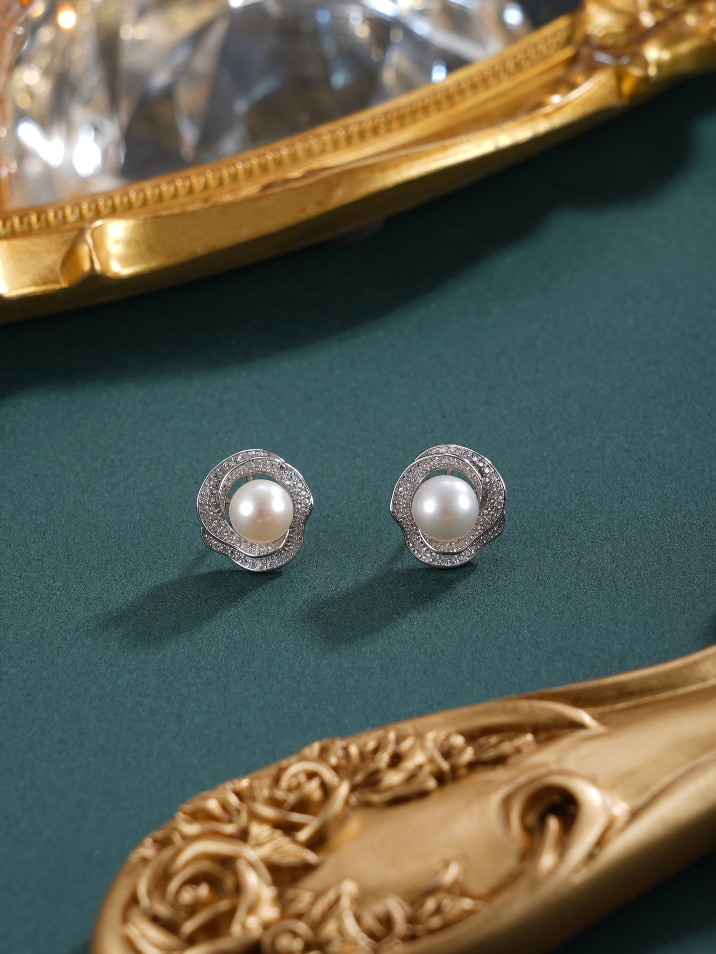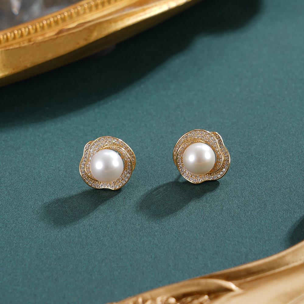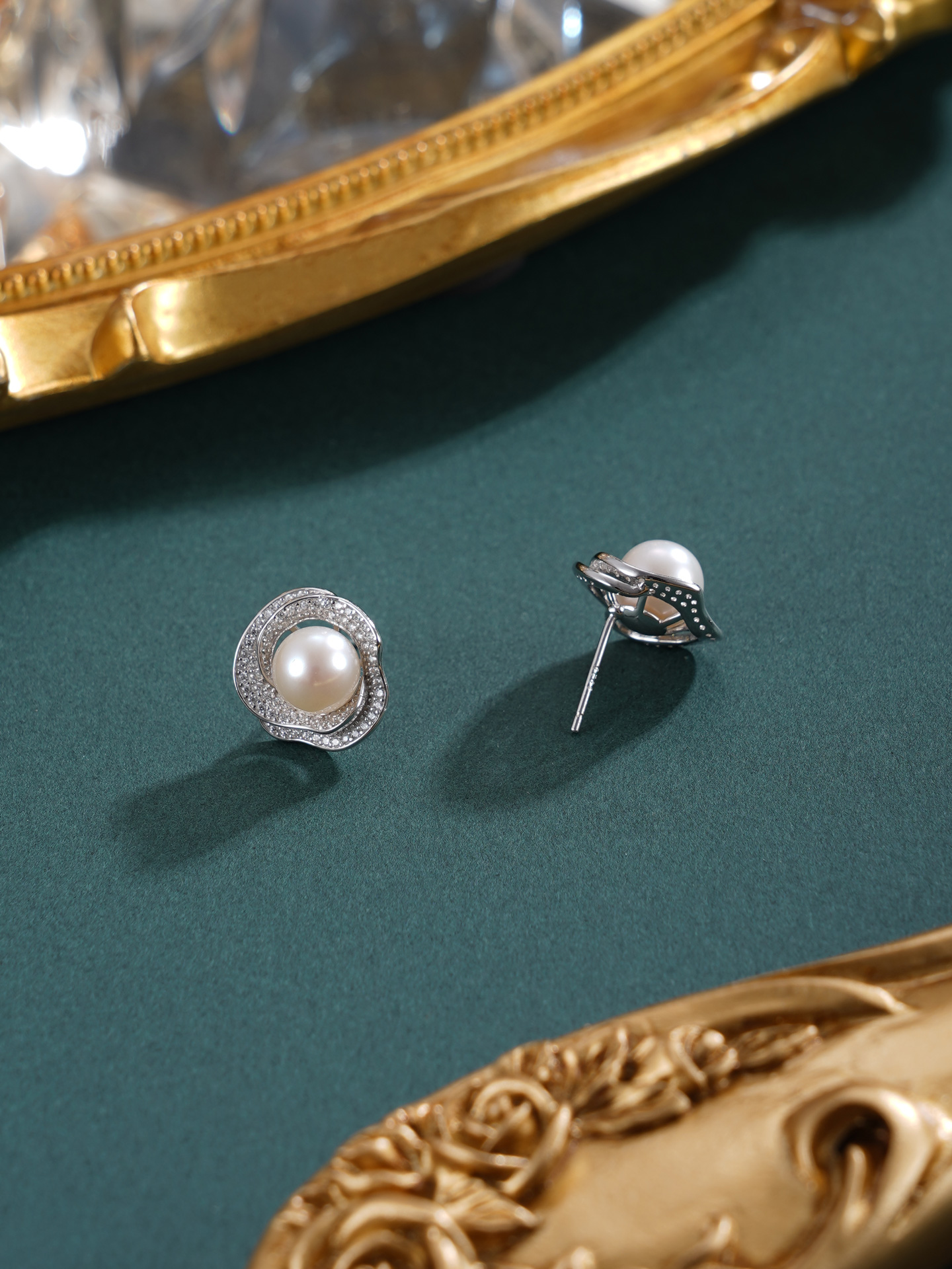 子佩集【芳华契阔】银S925珍珠惜王妃耳钉【E4639】8mm珠双色玫瑰花朵2601