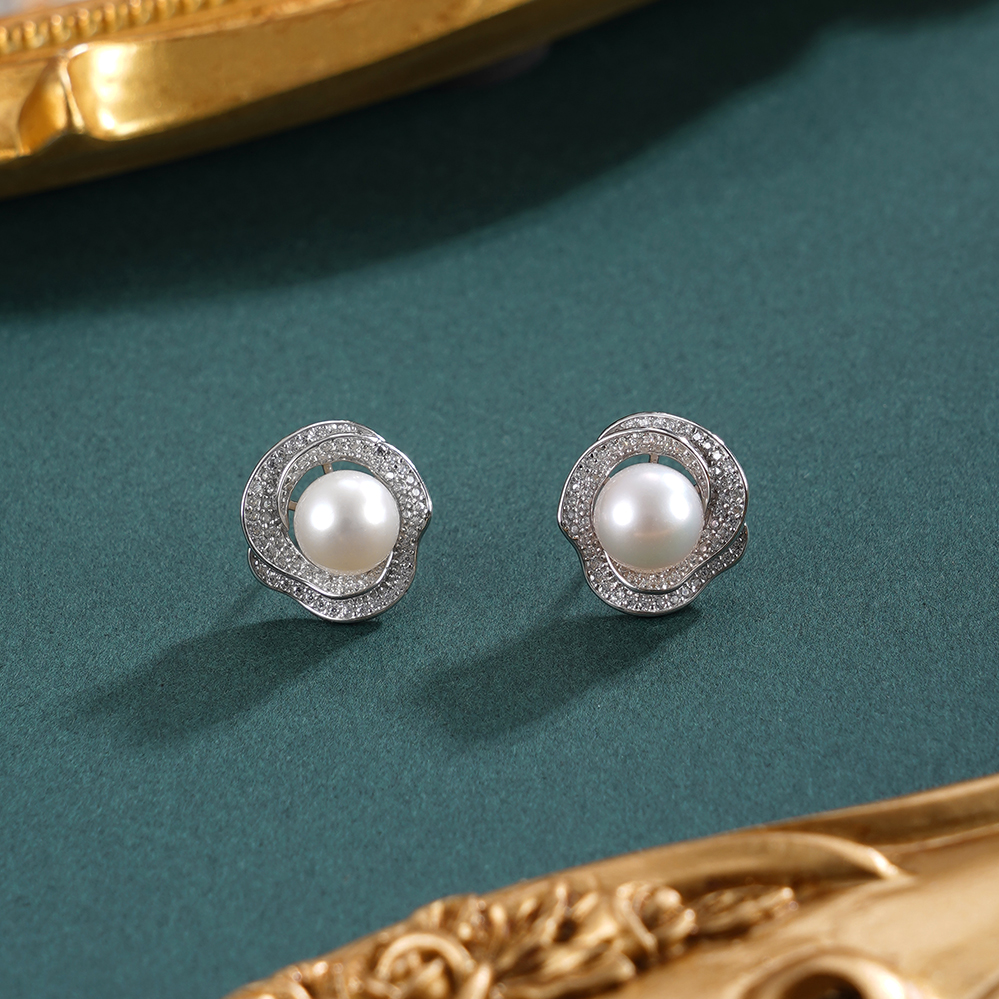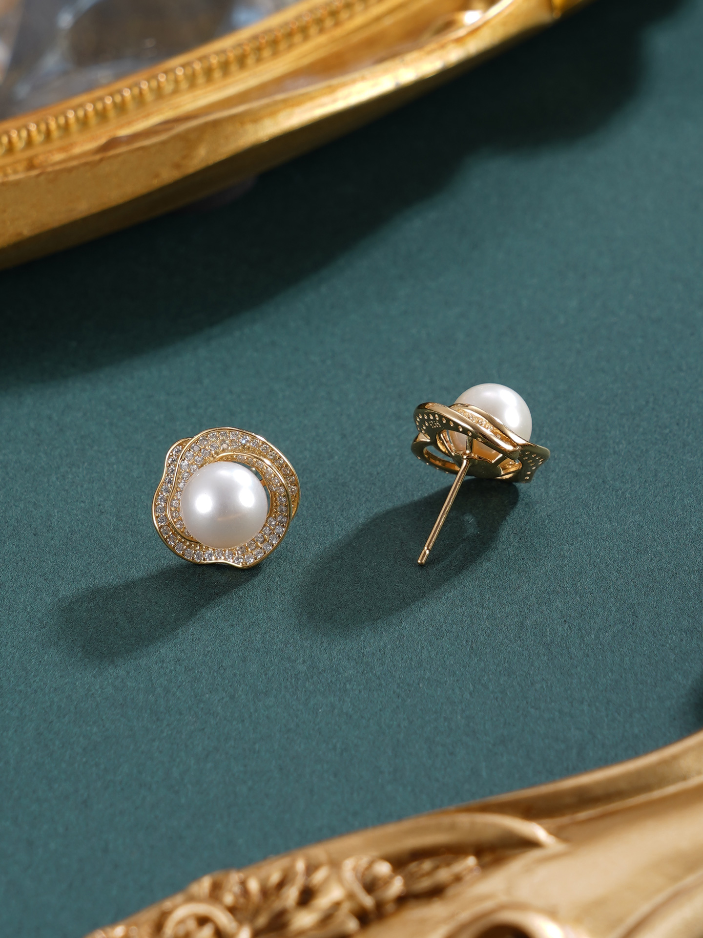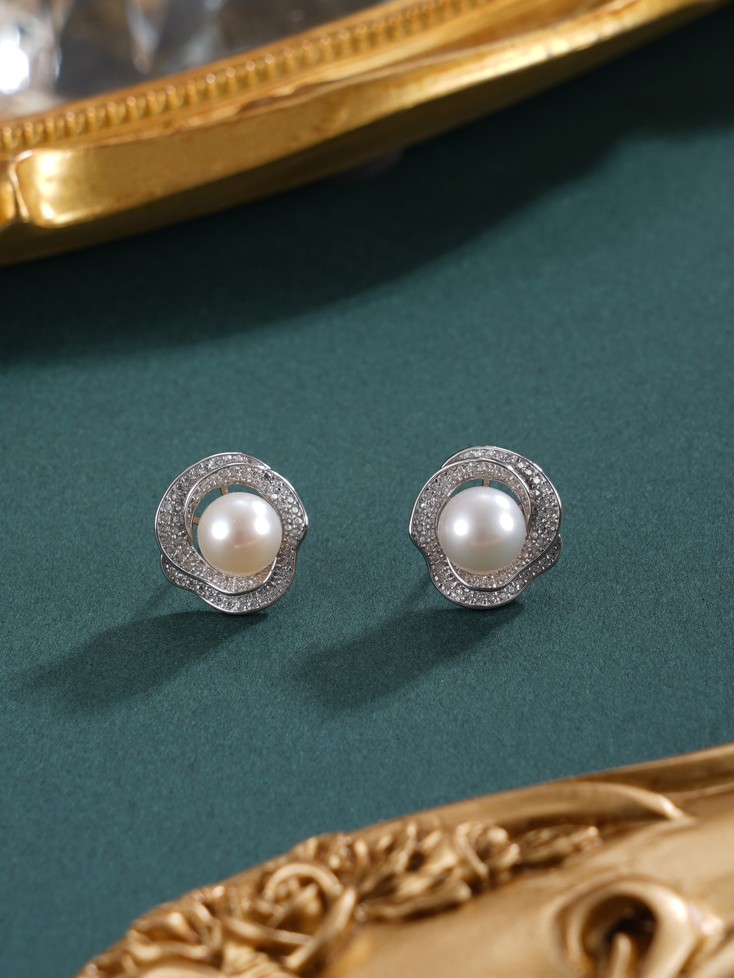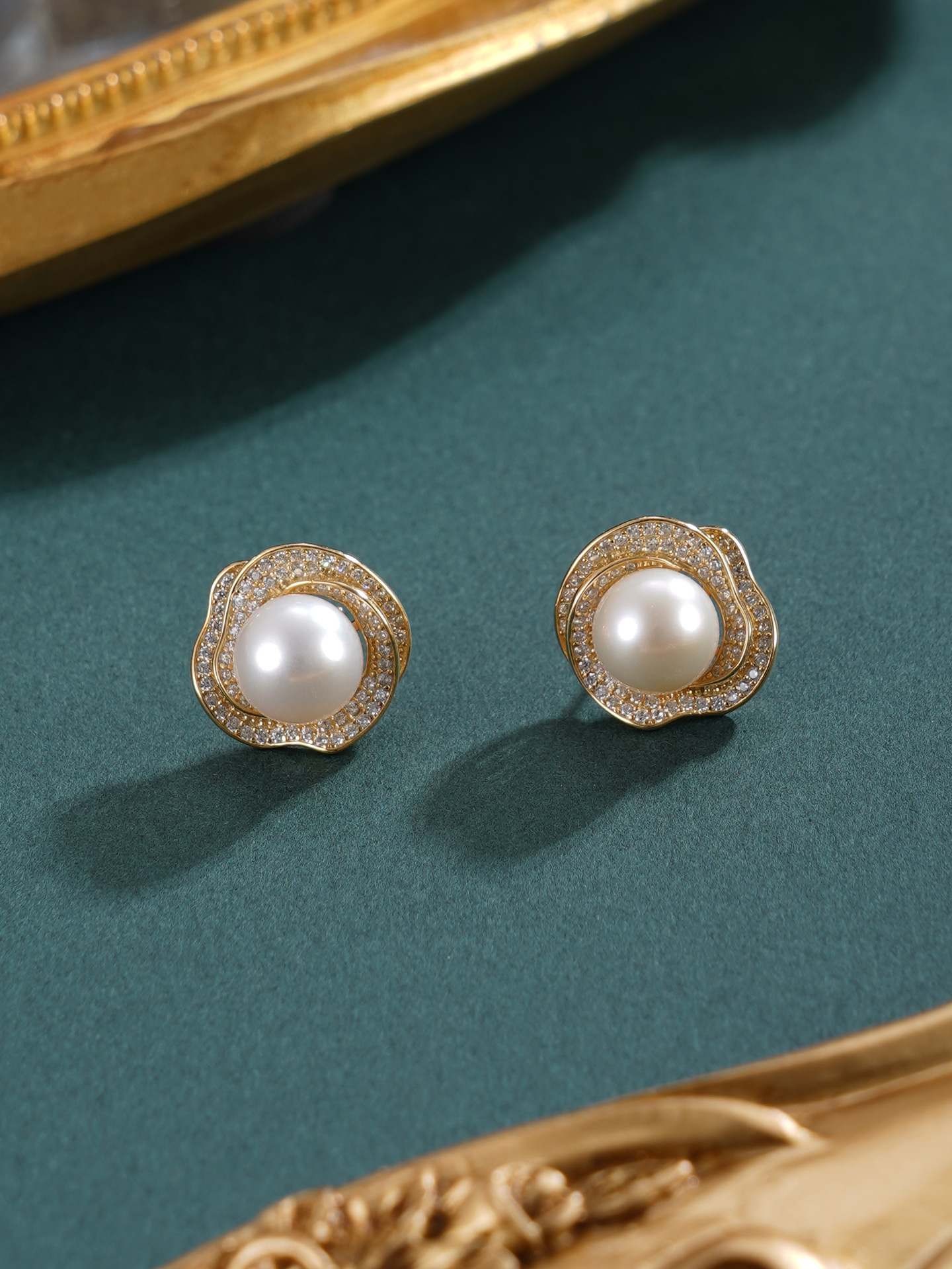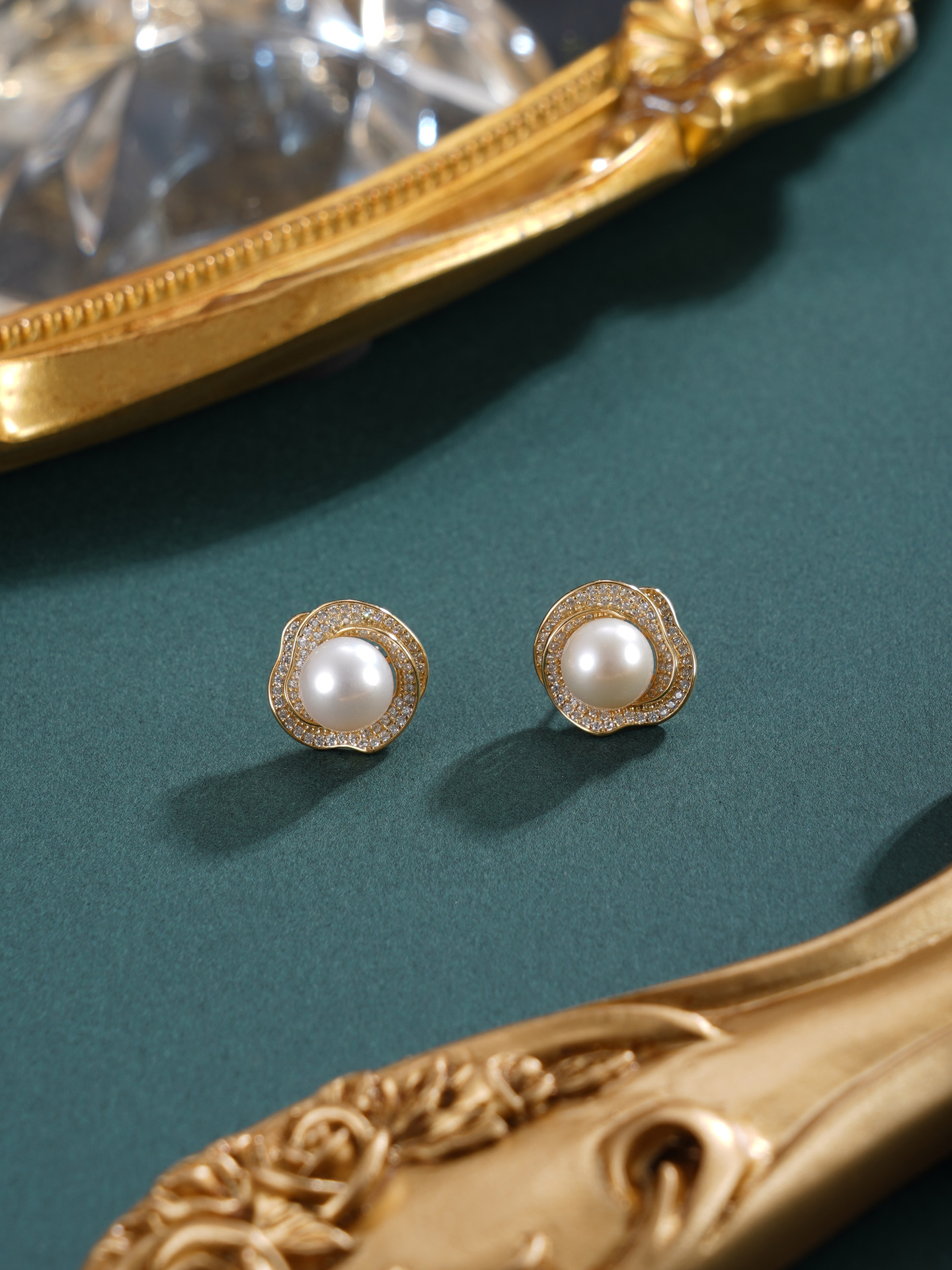 子佩集【芳华契阔】银S925珍珠惜王妃耳钉【E4639】8mm珠双色玫瑰花朵2601