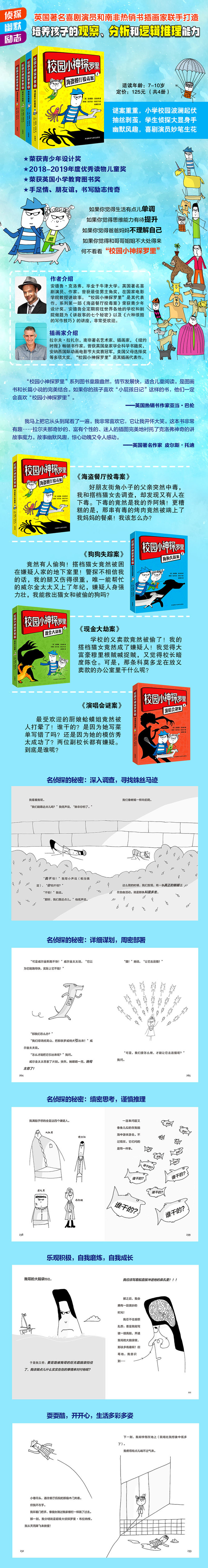 “校园小神探罗里”系列图书童趣盎然,情节发展快,适合儿童阅读。是图画书和长篇小说的完美结合。如果你的孩子喜欢“小屁孩日记”这样的书,他们一定会喜欢“校园小神探罗里”。