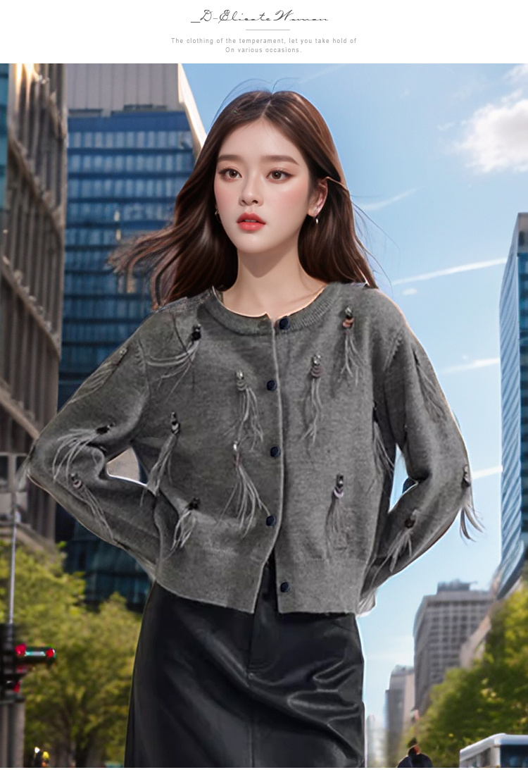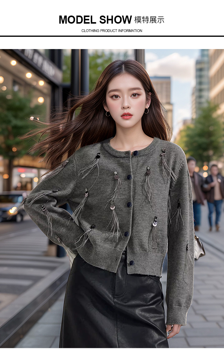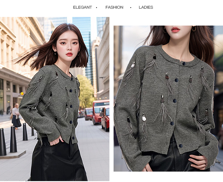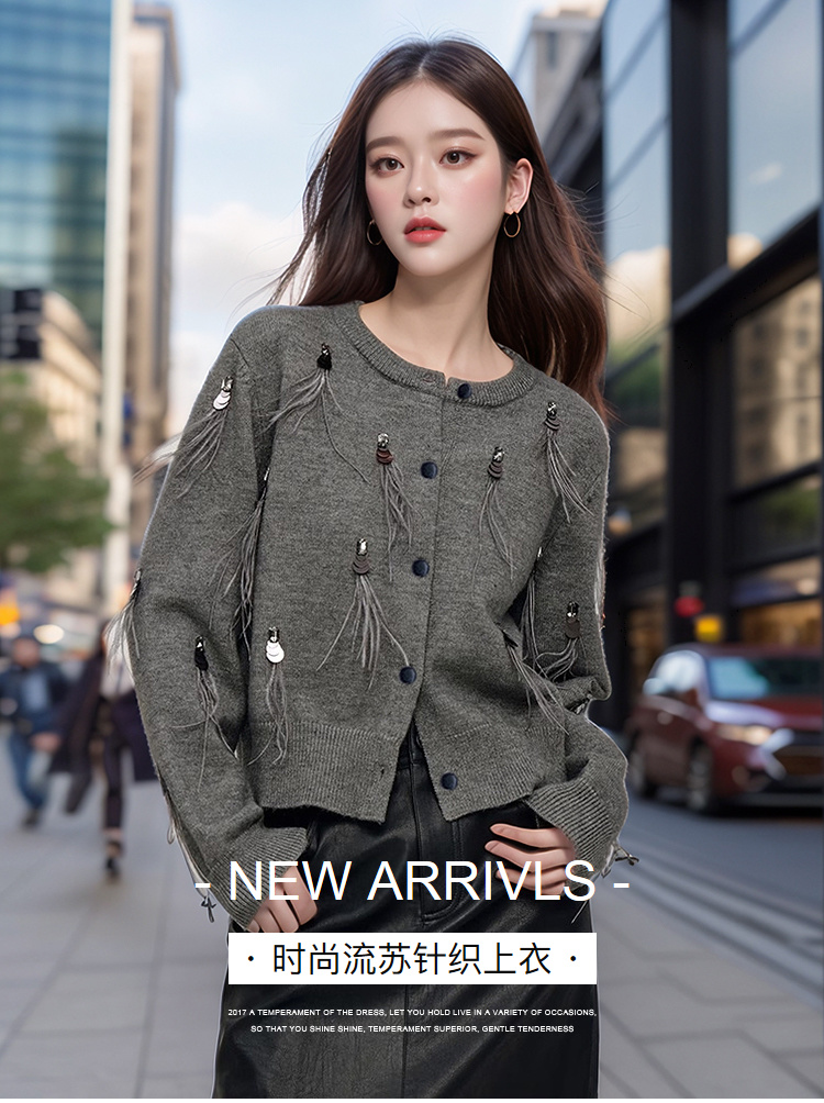 奢姿大码女装2024秋季减龄流苏设计针织开衫胖妹妹时尚简约上衣9843655384