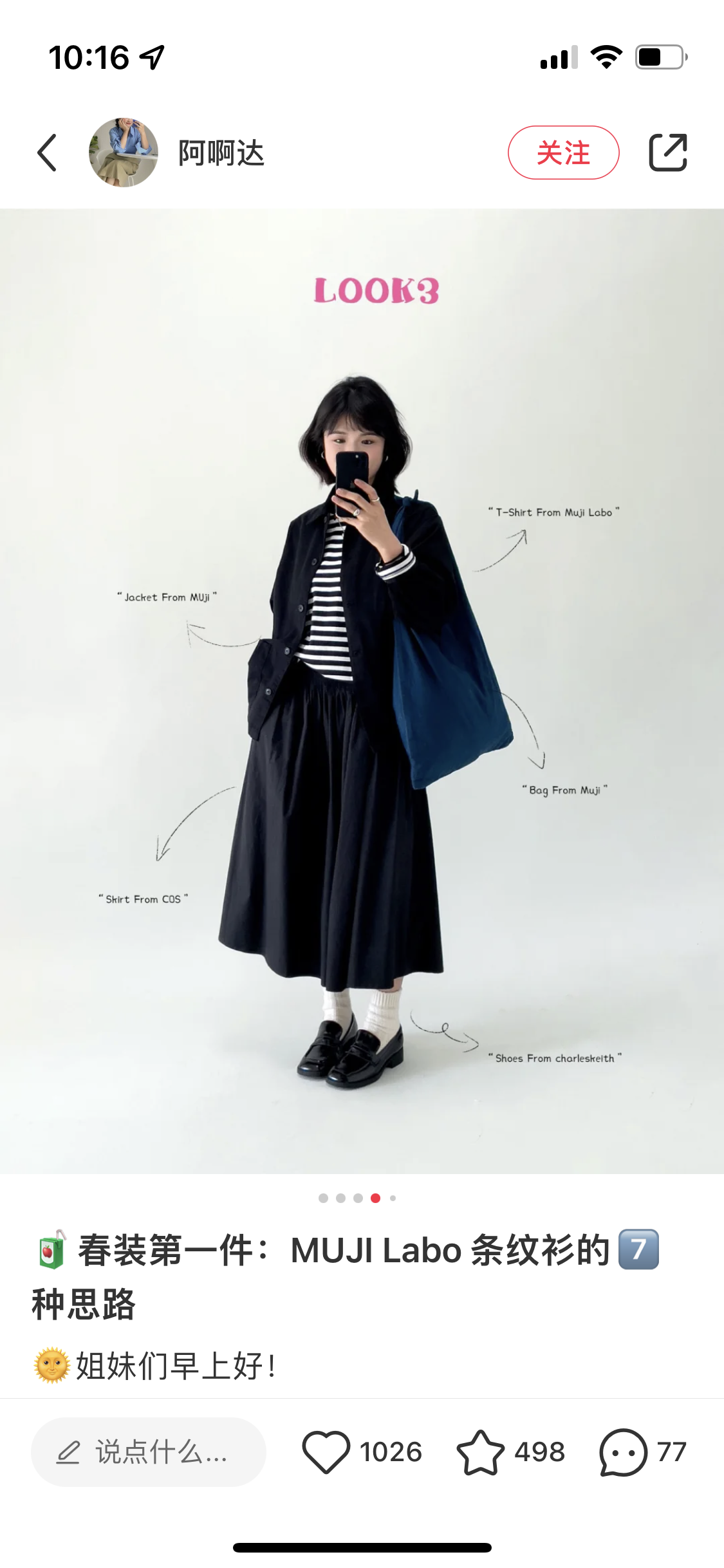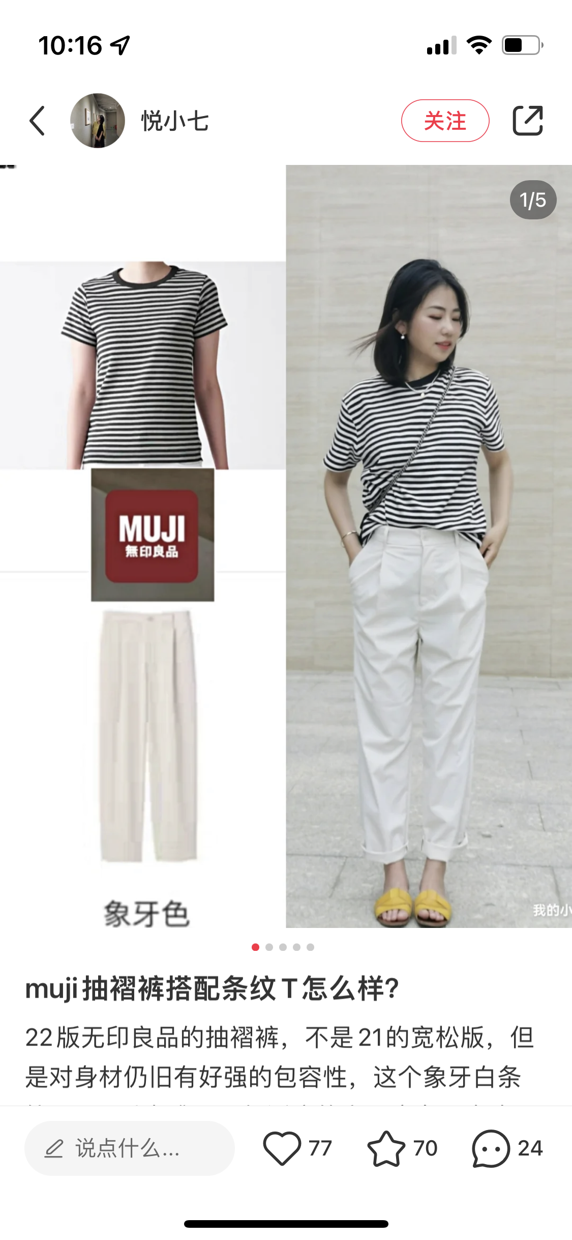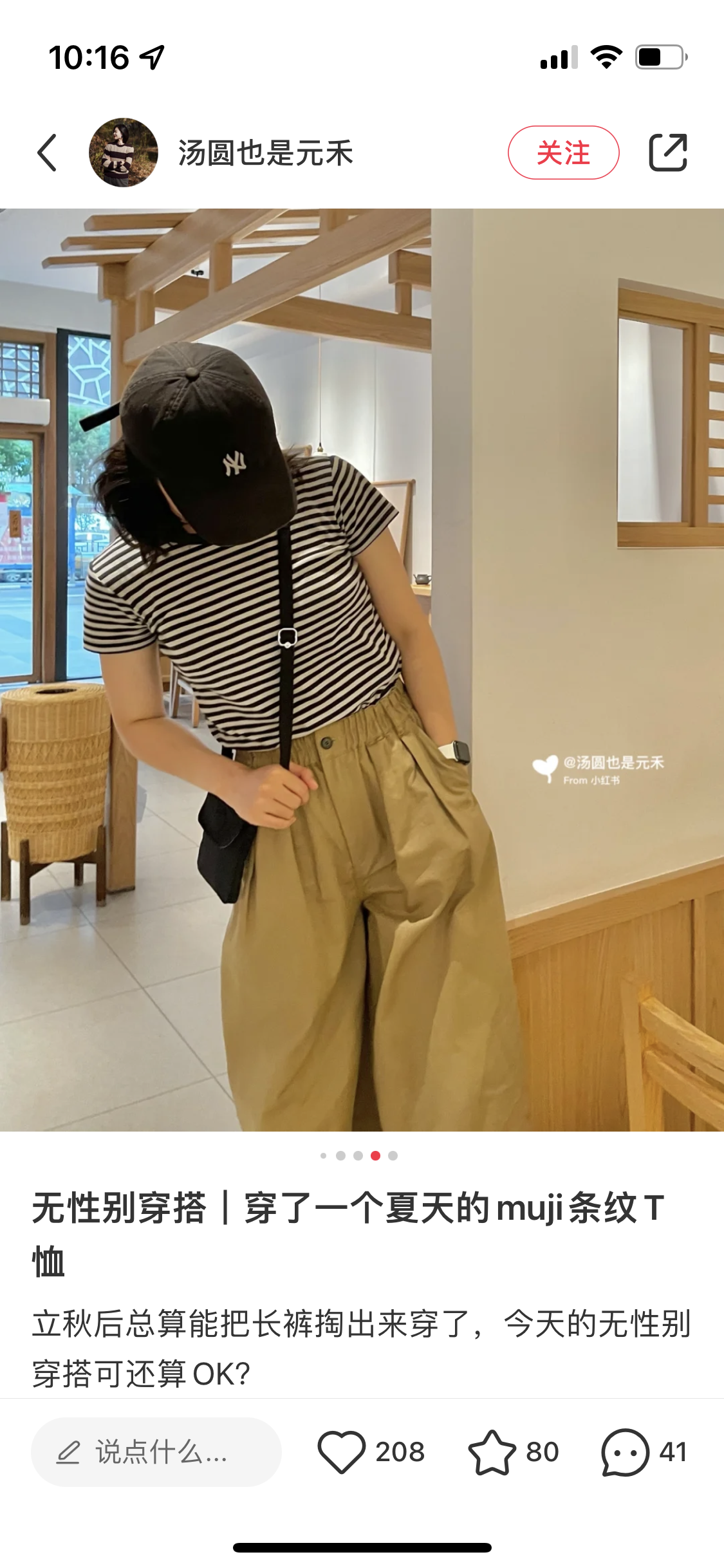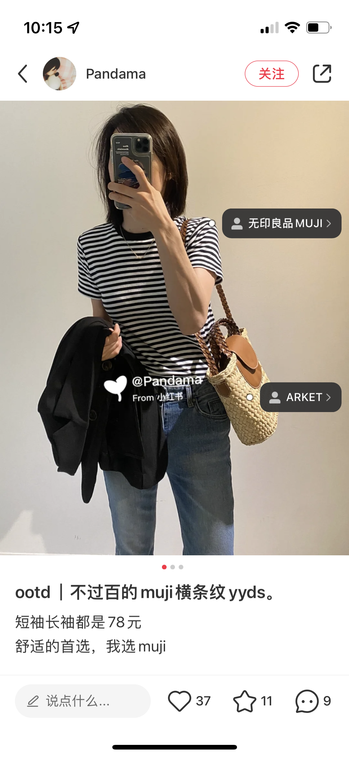 MUJI代工厂出的条纹Tee,满满的日杂风,干净、休闲,清新,上身简单自然轻松!纯棉质感软软糯糯,非常适合夏季贴身穿着,轻盈无束缚,基本没什么存在感!是比较基础的日常单品!