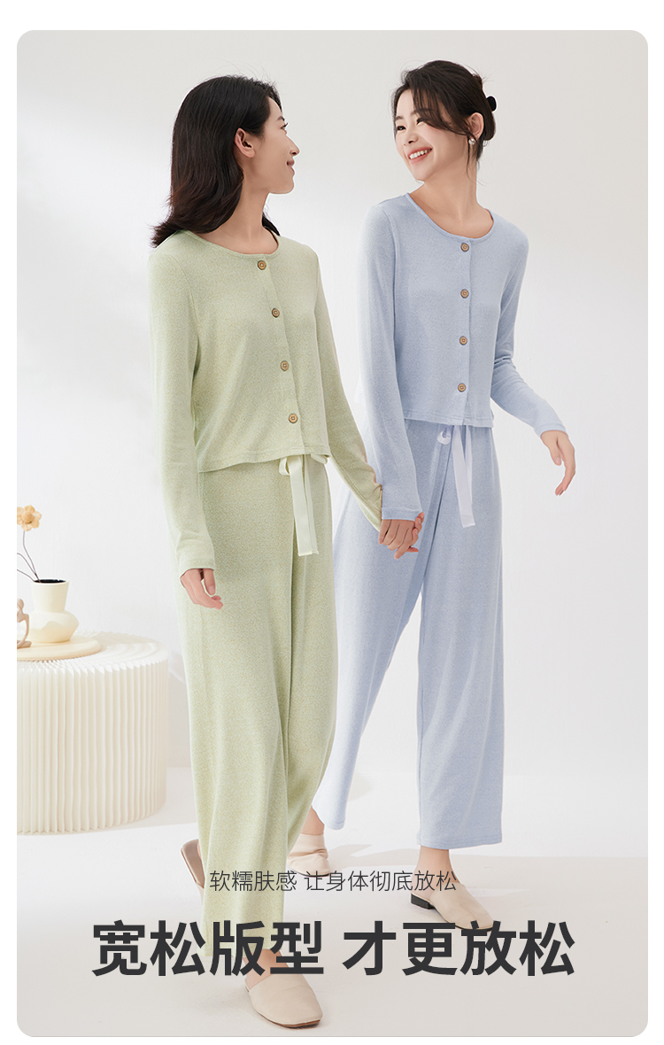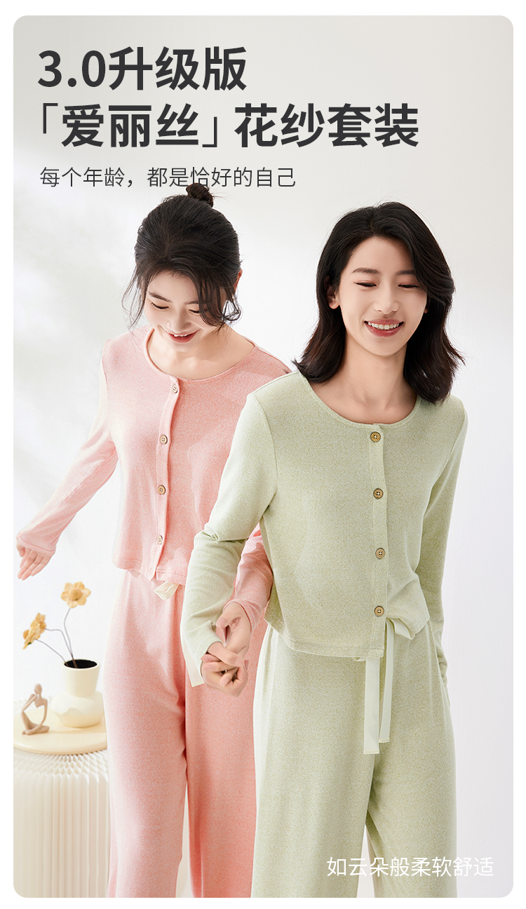 I’d爱帝云感超柔文艺花纱长袖套免穿内衣居家套装