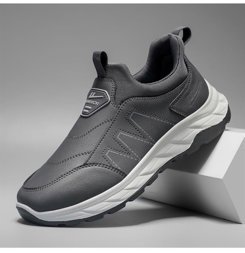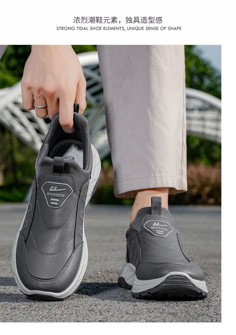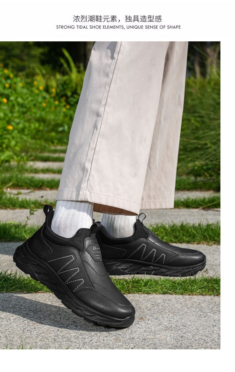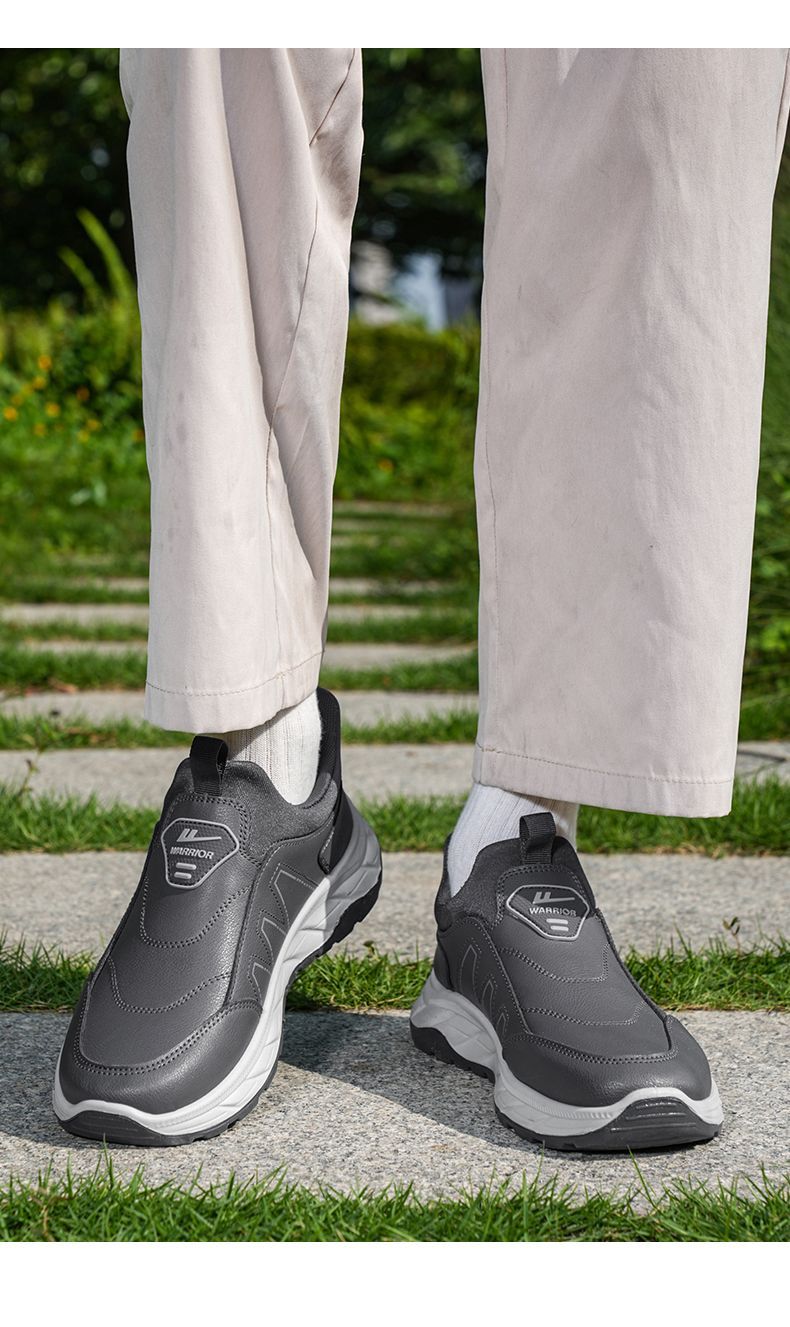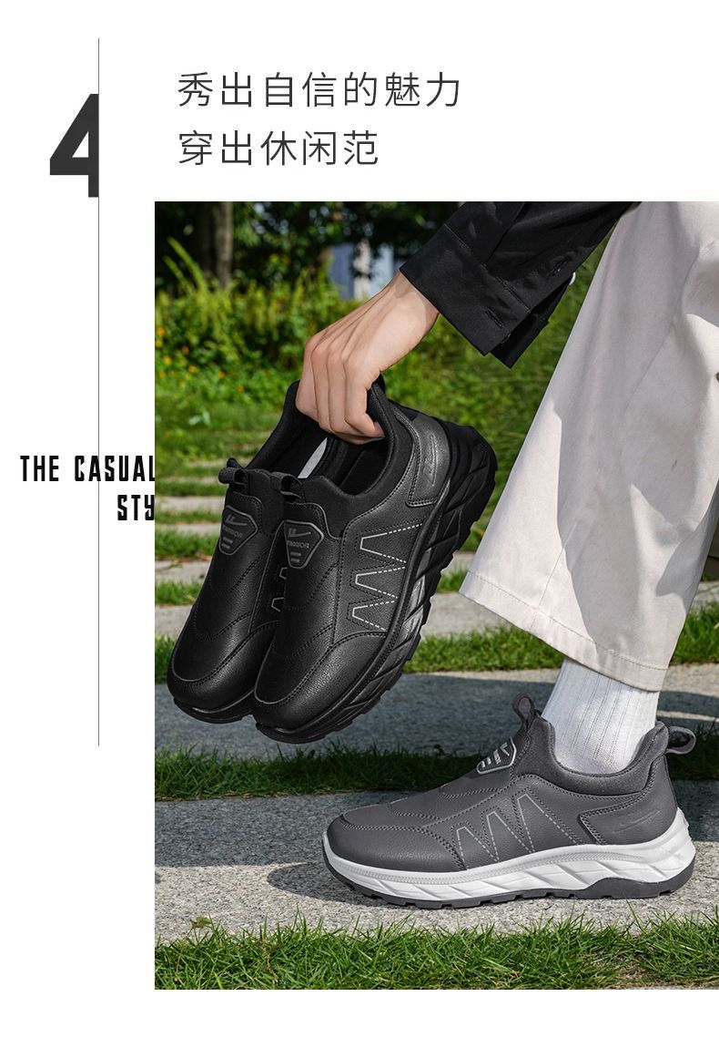 回力爸爸鞋子秋冬款软底休闲舒适防泼水皮面男鞋老年健步鞋老人鞋