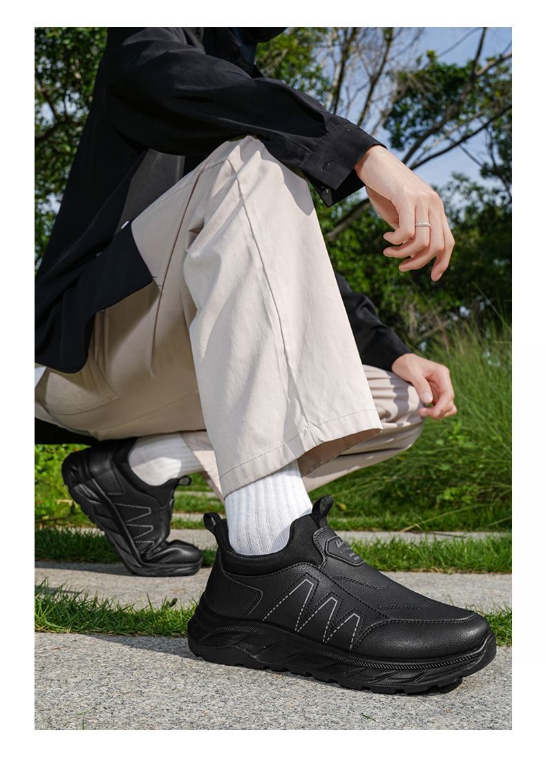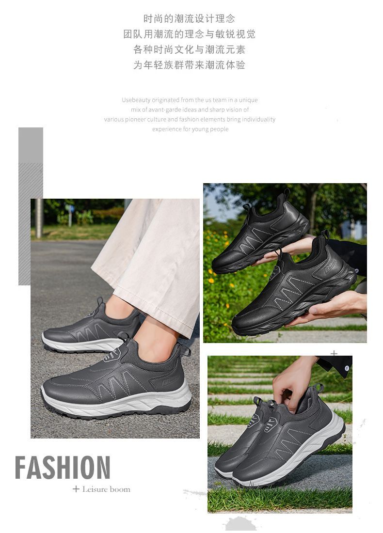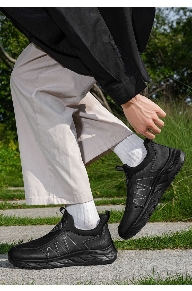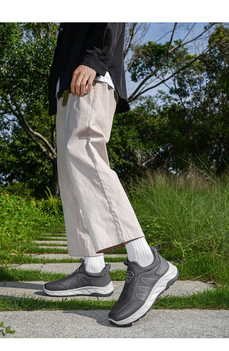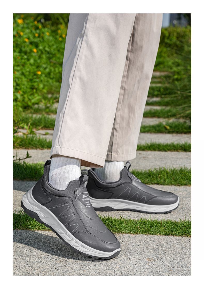 回力爸爸鞋子秋冬款软底休闲舒适防泼水皮面男鞋老年健步鞋老人鞋