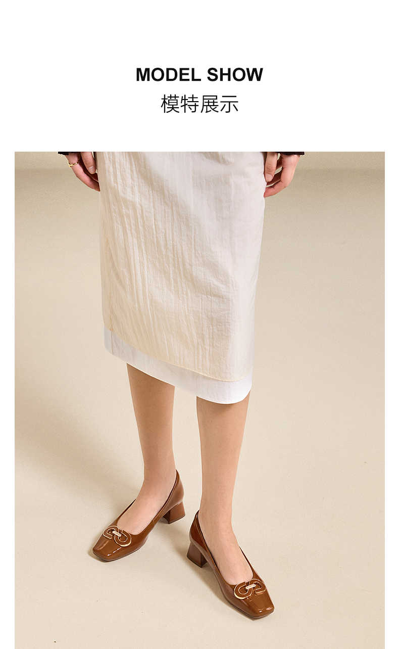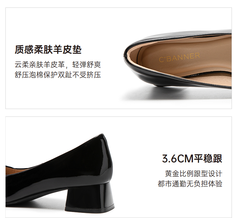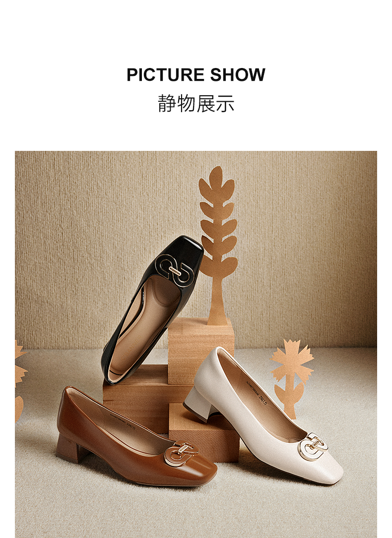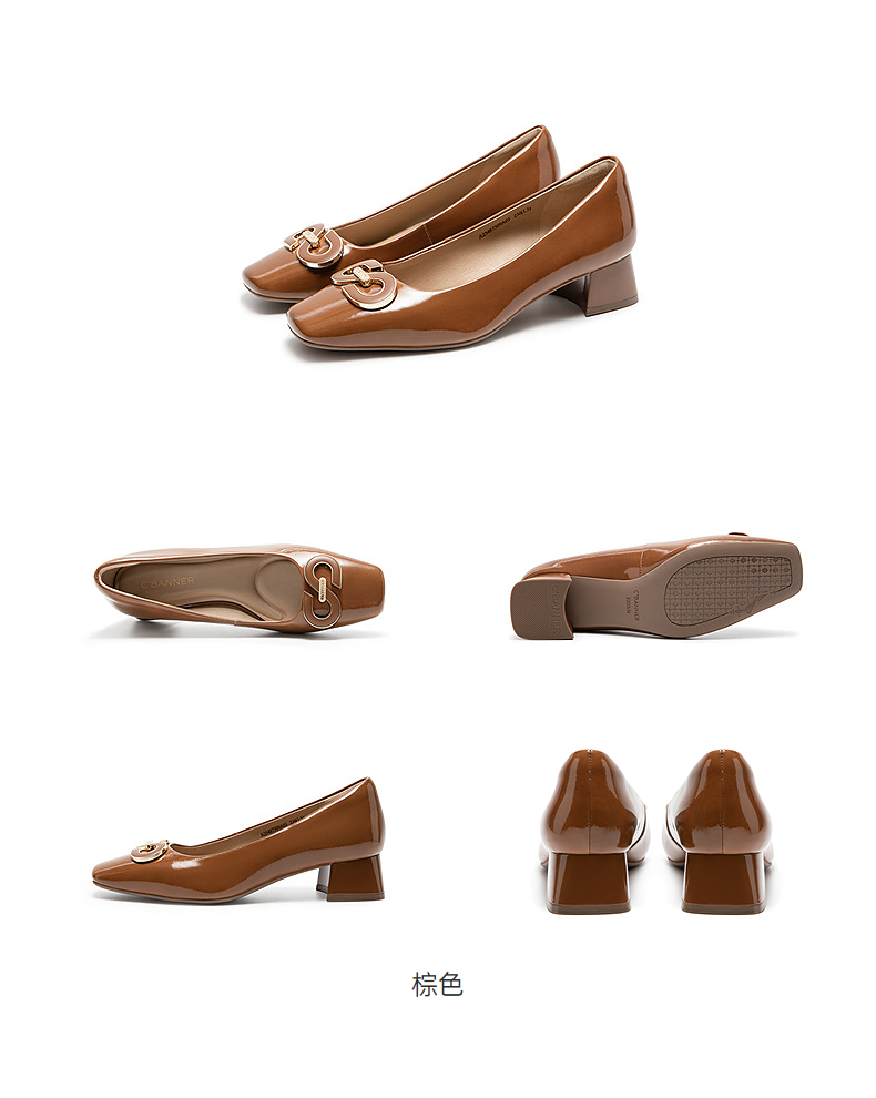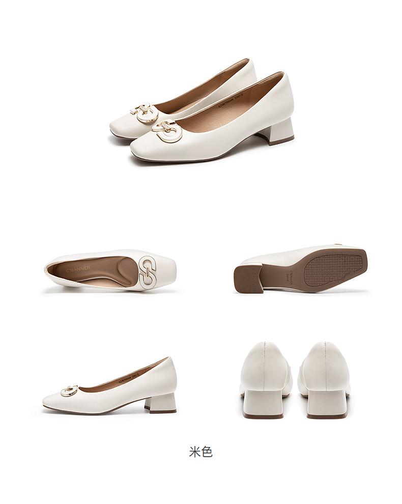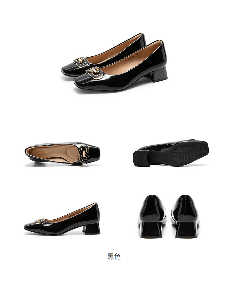 【静音系列】千百度双C拥抱粗中跟鞋女法式浅口单鞋A25487509