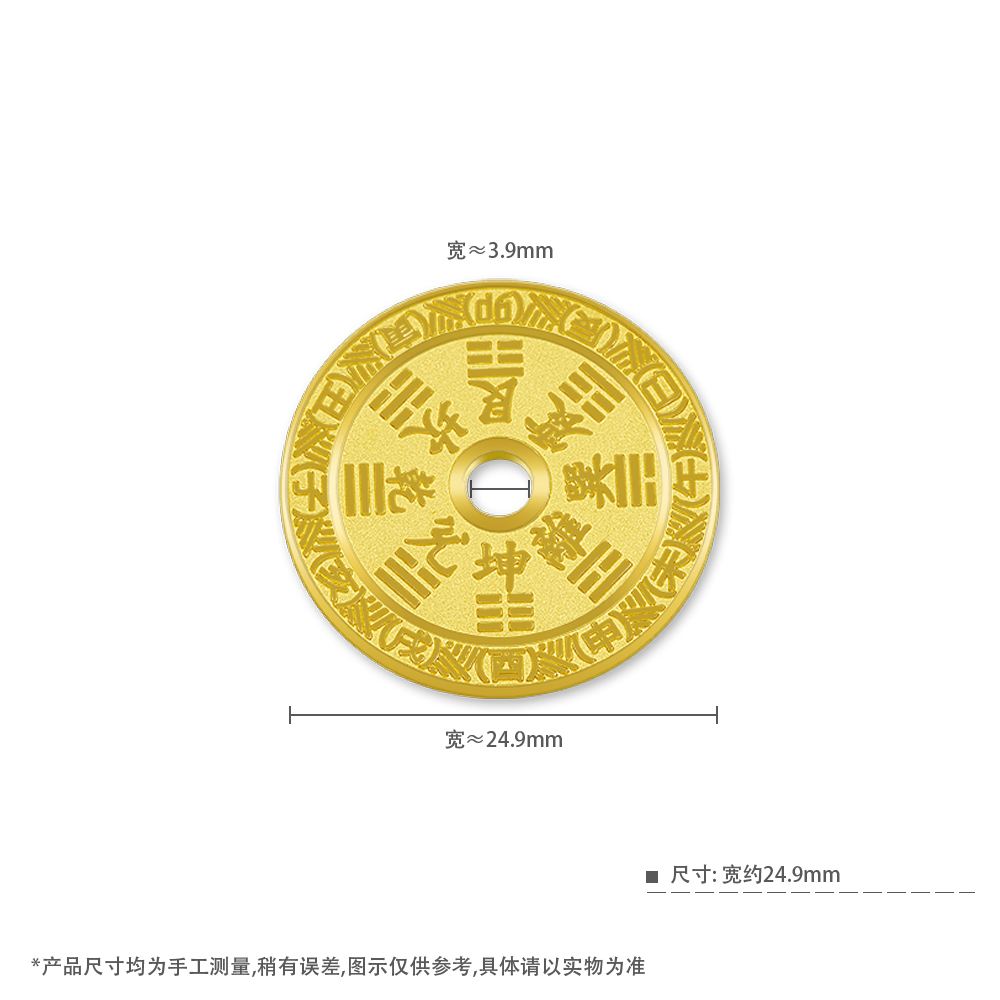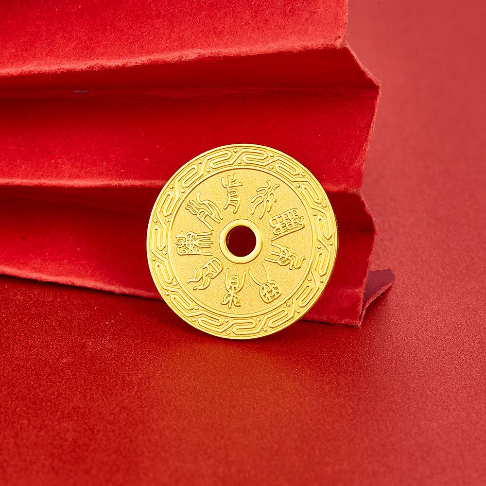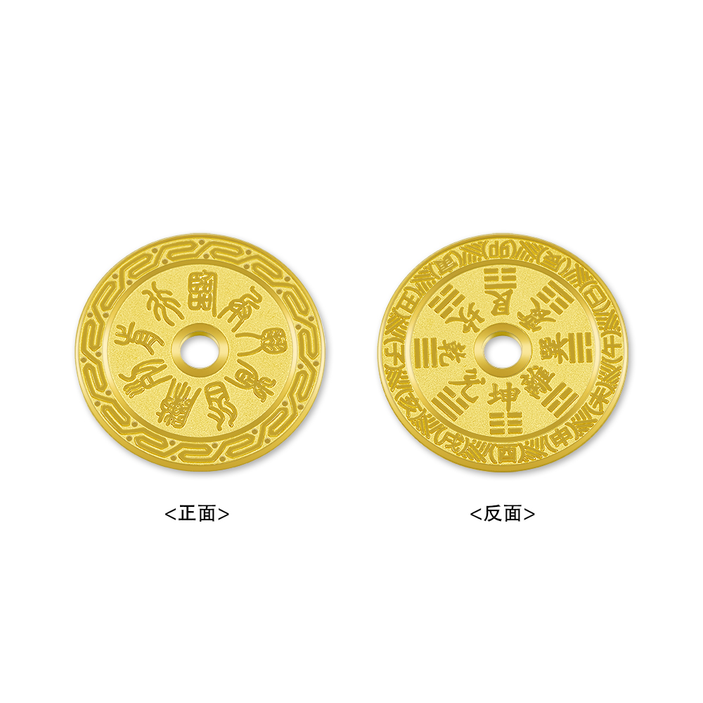 【限时克减150元】【10克】足金999.9 【10克】实心十二时辰乾坤八卦平安扣金条(配亚克力盒,塑封包装)(JT00022)(预售产品下单后不退款不退货不换货不补差价)
