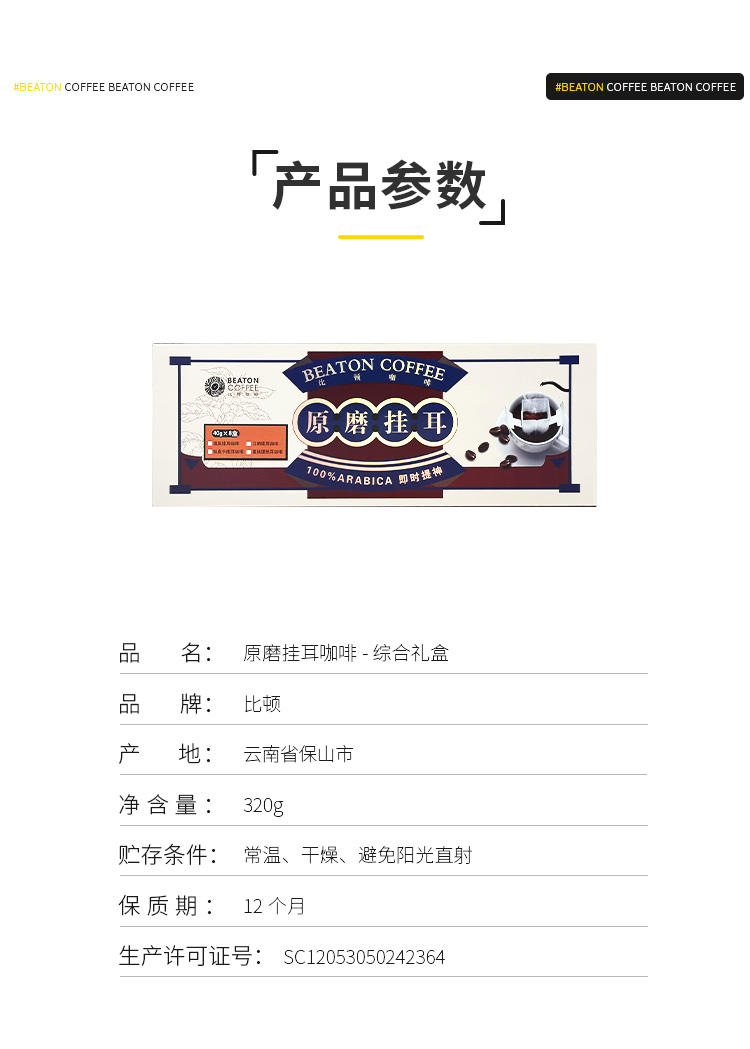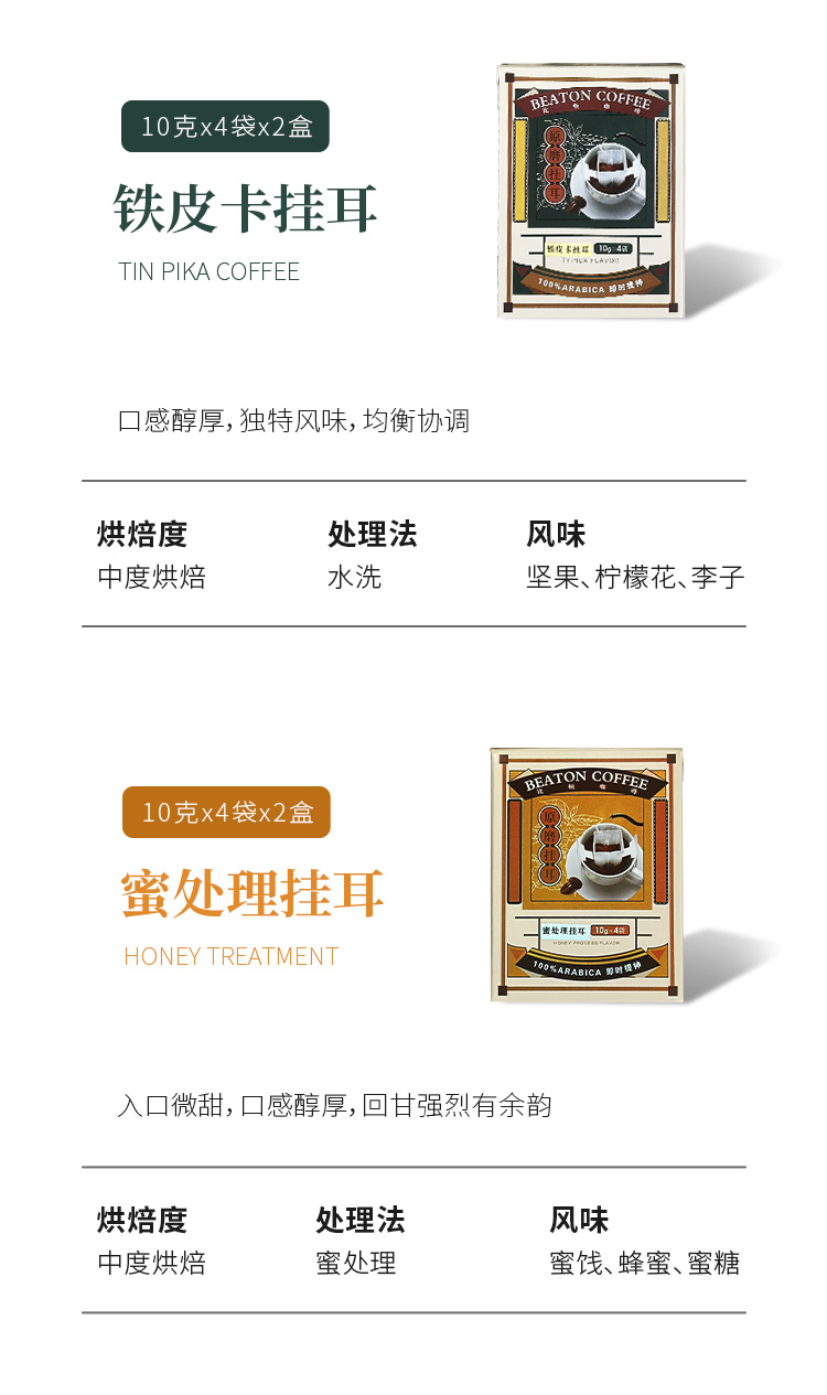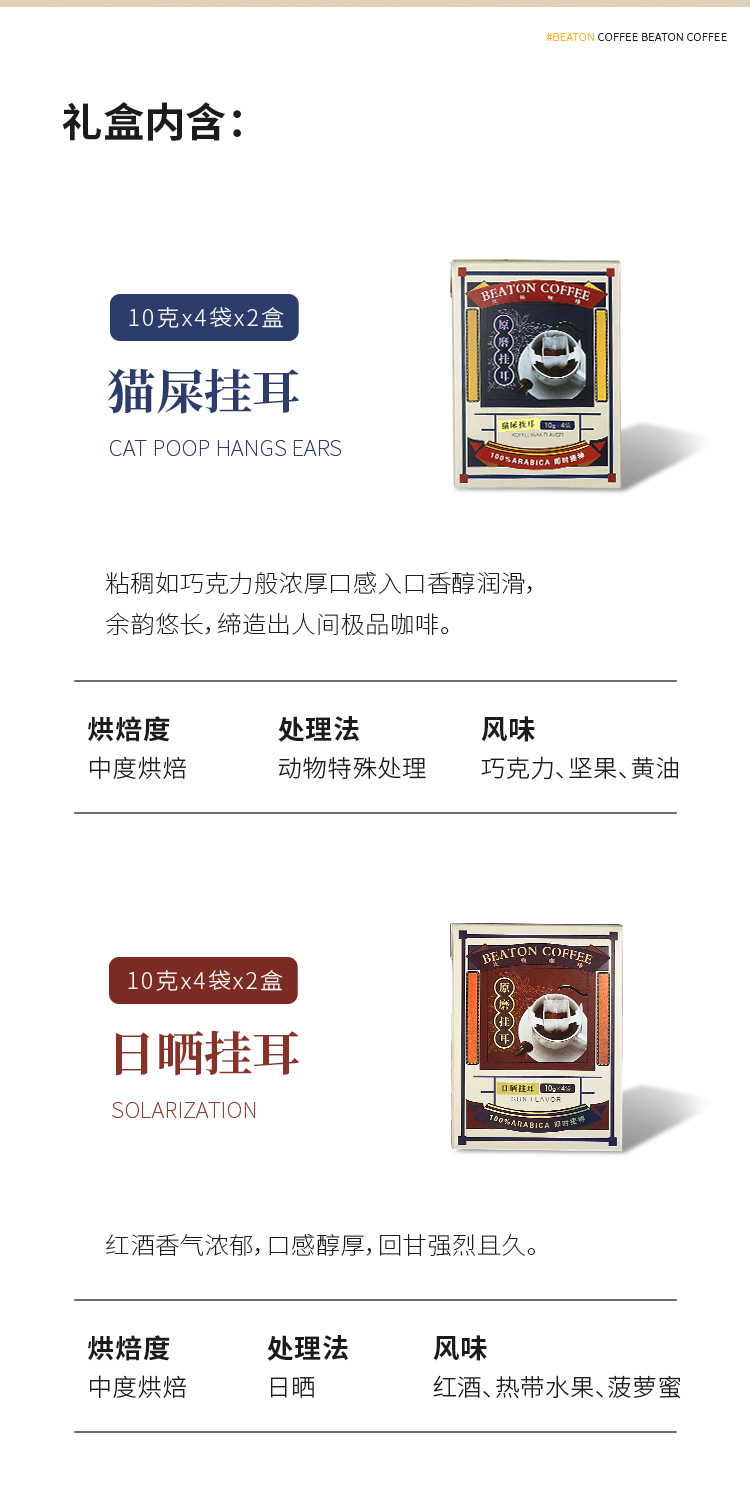 原磨挂耳咖啡礼盒 猫屎 日晒 蜜处理 铁皮卡 四风味挂耳咖啡 320克