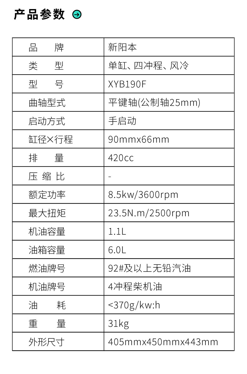 新阳本汽油发动机 XYB190F