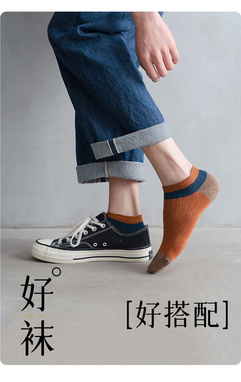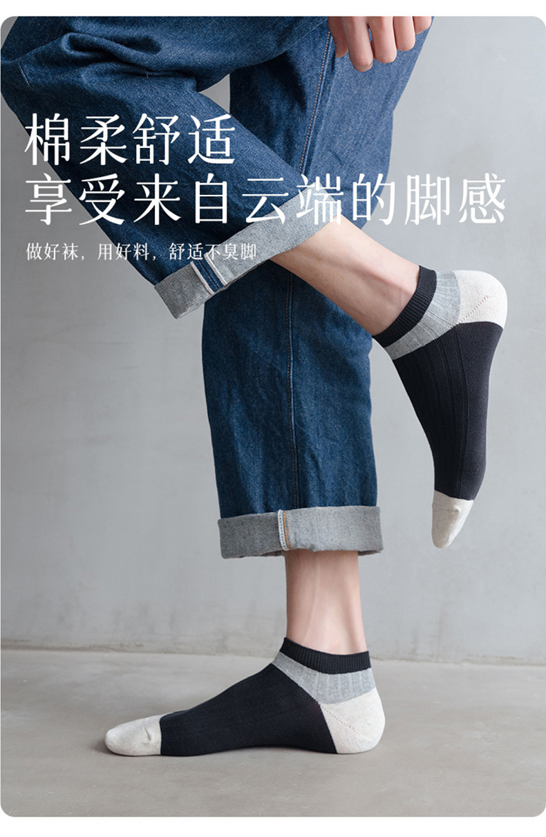 【男士拼色暗纹短袜】男士拼色暗纹短袜百搭休闲防臭7A抑菌吸汗袜子船袜夏