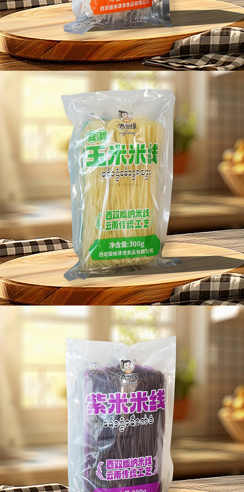云南西双版纳特产傣家米线/玉米/山谷红米/紫米,300g尝鲜装,多种口味可选