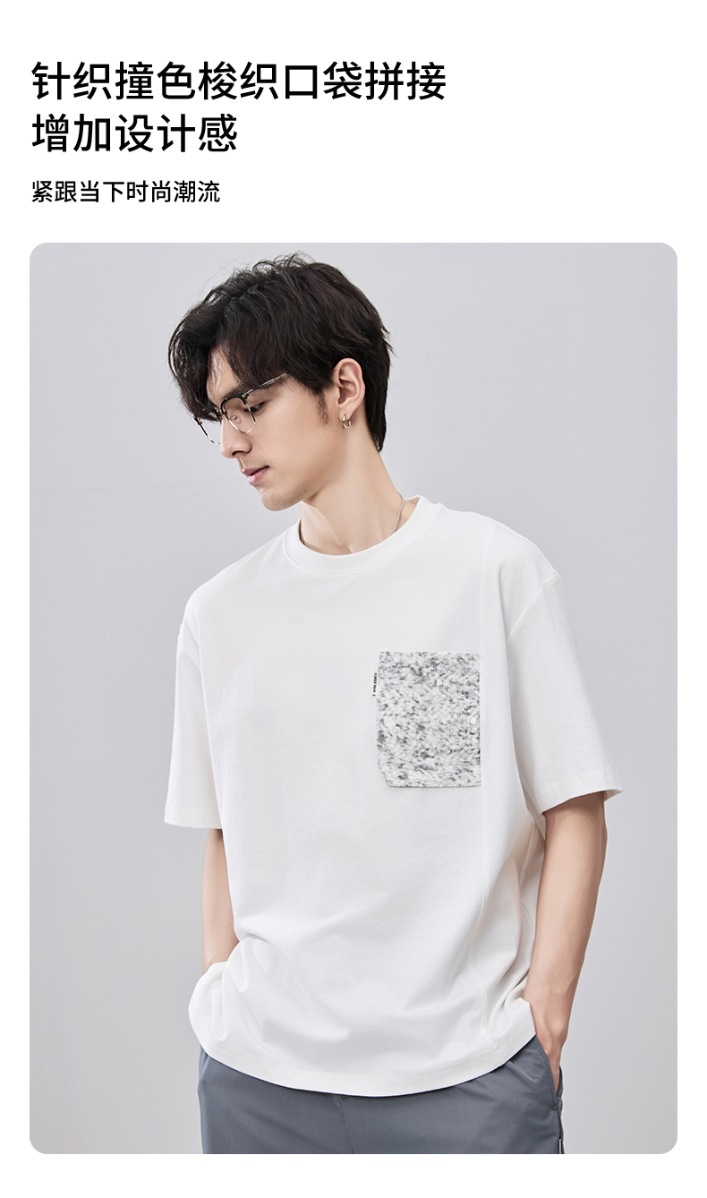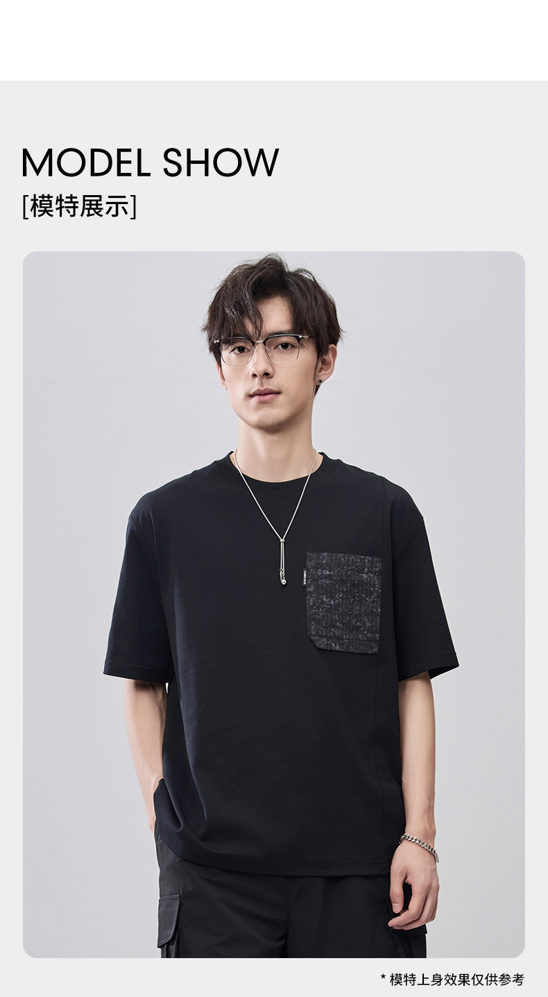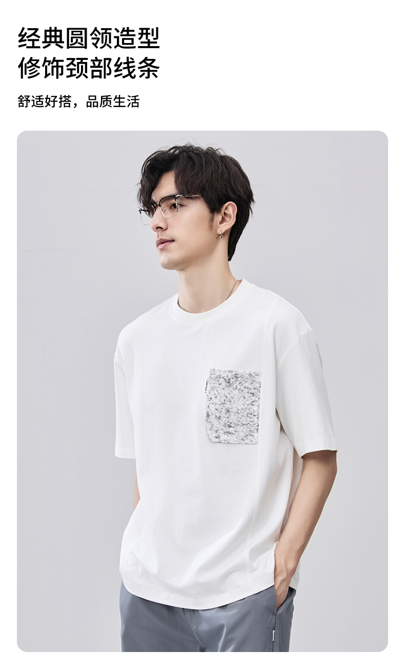 贝纳川夏季拼接圆领短袖T恤ECF214009