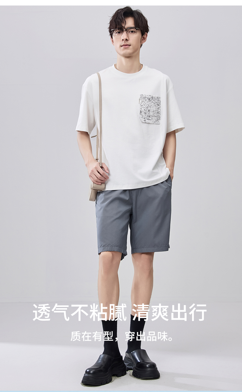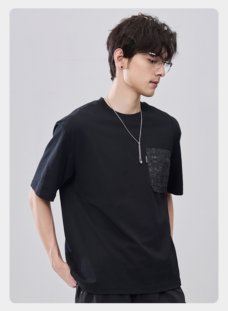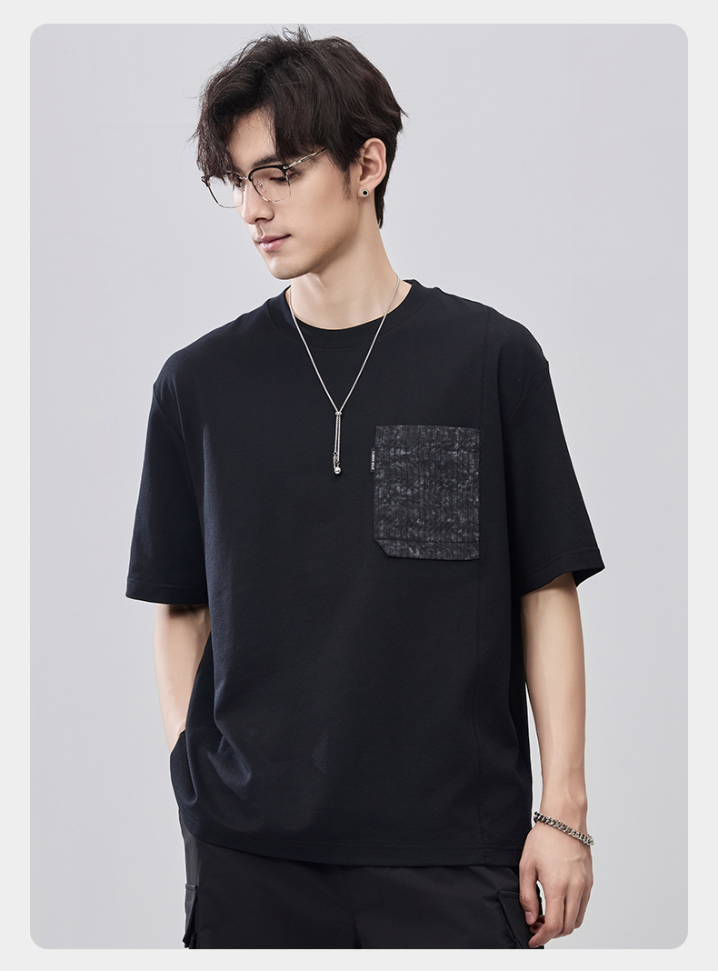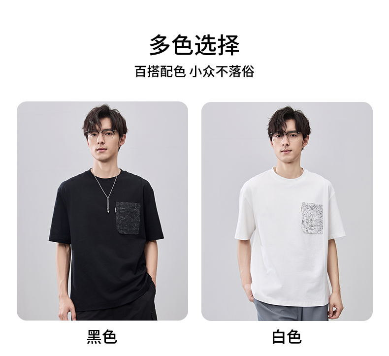 贝纳川夏季拼接圆领短袖T恤ECF214009
